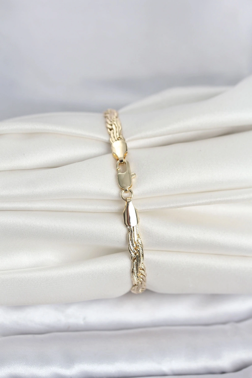 CM 14K Gold Renk Ezme Sarmal Zincir Model Kadın Bileklik