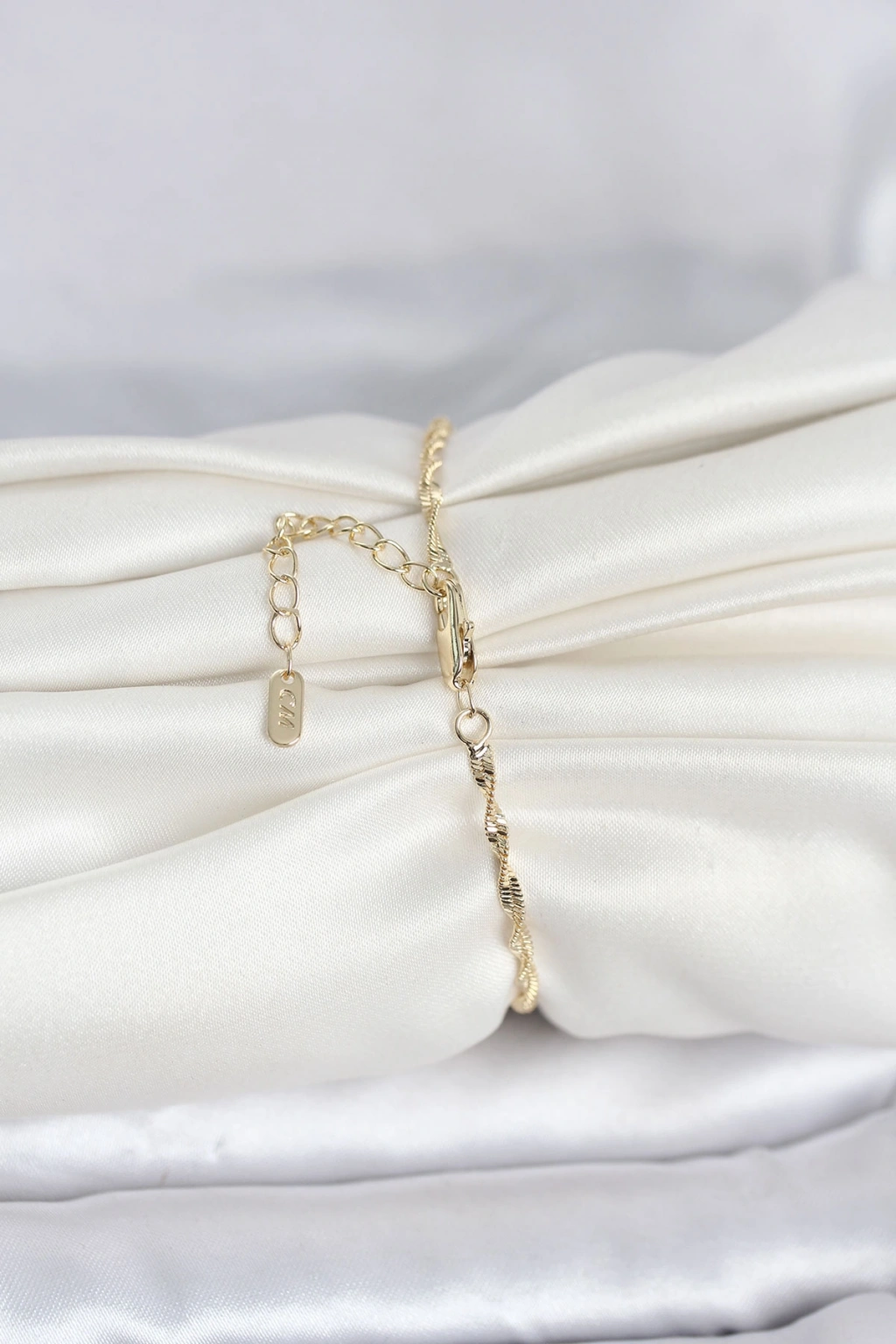 CM 14K Gold Renk Yassı Ezme Burgu Model Kadın Bileklik