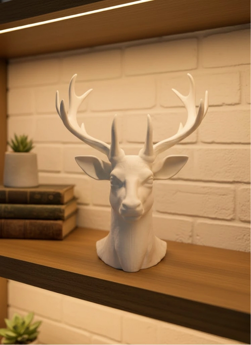 Dekoratif beyaz geyik biblo, modern tasarımı ve estetik duruşu ile ev dekorasyonuna zarif bir katkı sağlar. 23 cm boyutundaki ideal ölçüsü sayesinde küçük alanlarda bile rahatlıkla sergilenebilir. Beyaz rengi, her türlü dekorasyon stiline kolayca uyum sağlar ve ortamda ferah bir atmosfer oluşturur.Raf, kitaplık, masa, konsol veya vitrin üzerinde kullanıma uygundur. Özellikle sade ve minimal dekorasyon anlayışını benimseyenler için şık bir tamamlayıcıdır. Geyik figürünün zarif hatları, dekorasyona doğal ve sakin bir hava katar. Mat yüzeyi sayesinde ışığı yumuşak şekilde yansıtarak göz yormayan bir görünüm sunar.Bu dekoratif biblo, evinize modern bir dokunuş kazandırırken aynı zamanda bulunduğu alanda estetik bir denge oluşturur. Tek başına dikkat çekici bir obje olarak kullanılabileceği gibi, farklı boyutlarda ve renklerde dekoratif aksesuarlarla birlikte kombinlenebilir.Dayanıklı ve kaliteli yapısı sayesinde uzun süre formunu korur. Hem günlük dekorasyonda hem de özel günlerde masa veya raf süslemesi olarak tercih edilebilir. Şık tasarımı sayesinde hediye alternatifi olarak da öne çıkar.