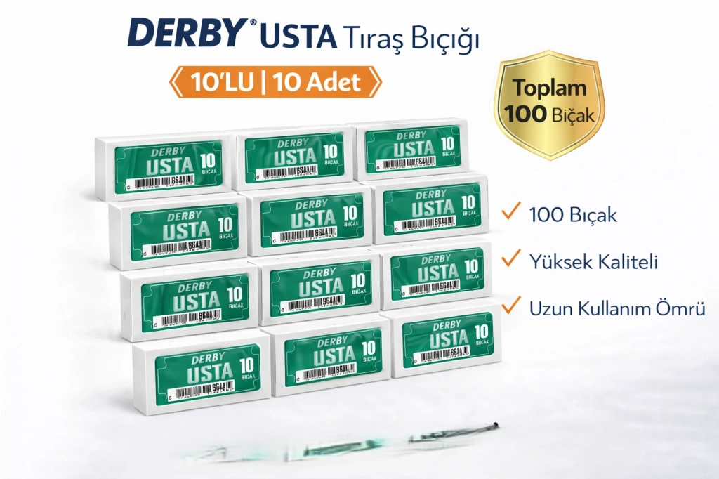 derby usta jilet, derby jilet 10lu, derby jilet 100lü, çift taraflı jilet, tam jilet, berber jileti, ustura jileti, geleneksel tıraş jileti, paslanmaz çelik jilet, profesyonel jilet, derby usta tam bıçak, ekonomik jilet paketi, berber malzemeleri, sakal tıraş jileti, derby razor blade