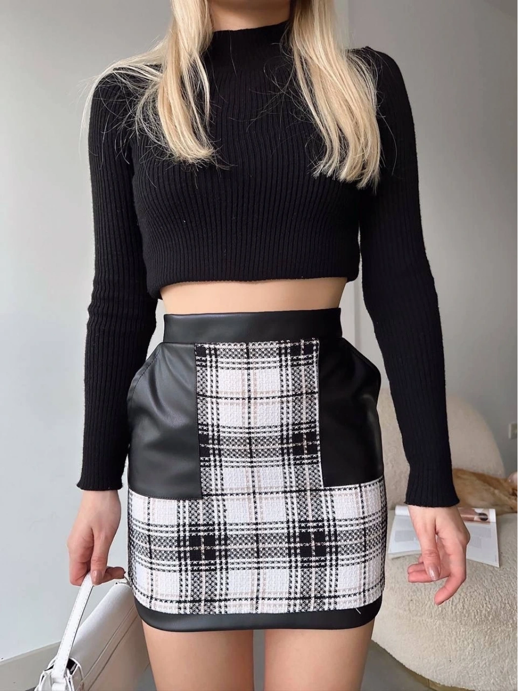 • Bel kısmında bulunan deri cepler, eteğe modern bir dokunuş katmaktadır.