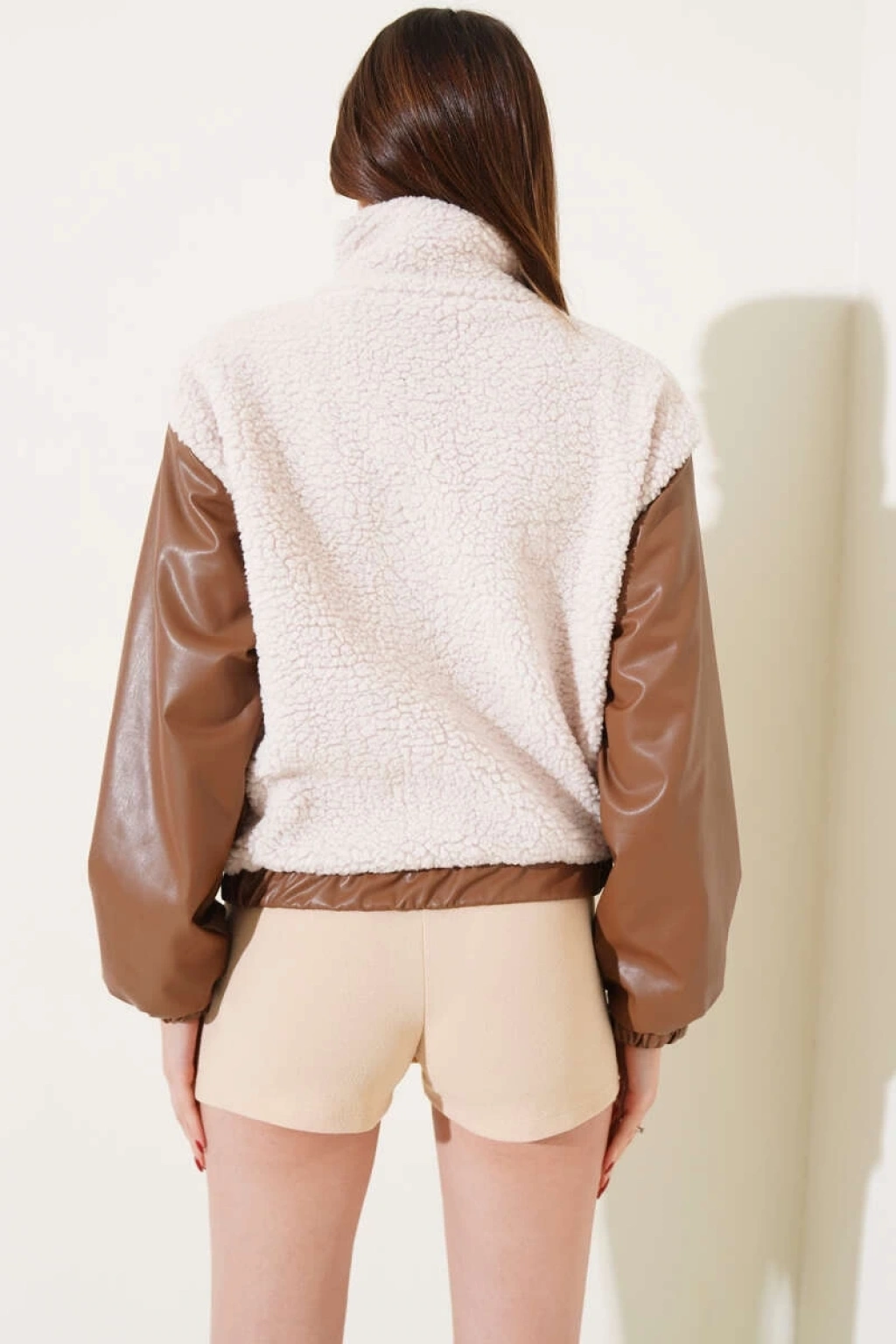 • Deri garnili cepli peluş mont taba t1253