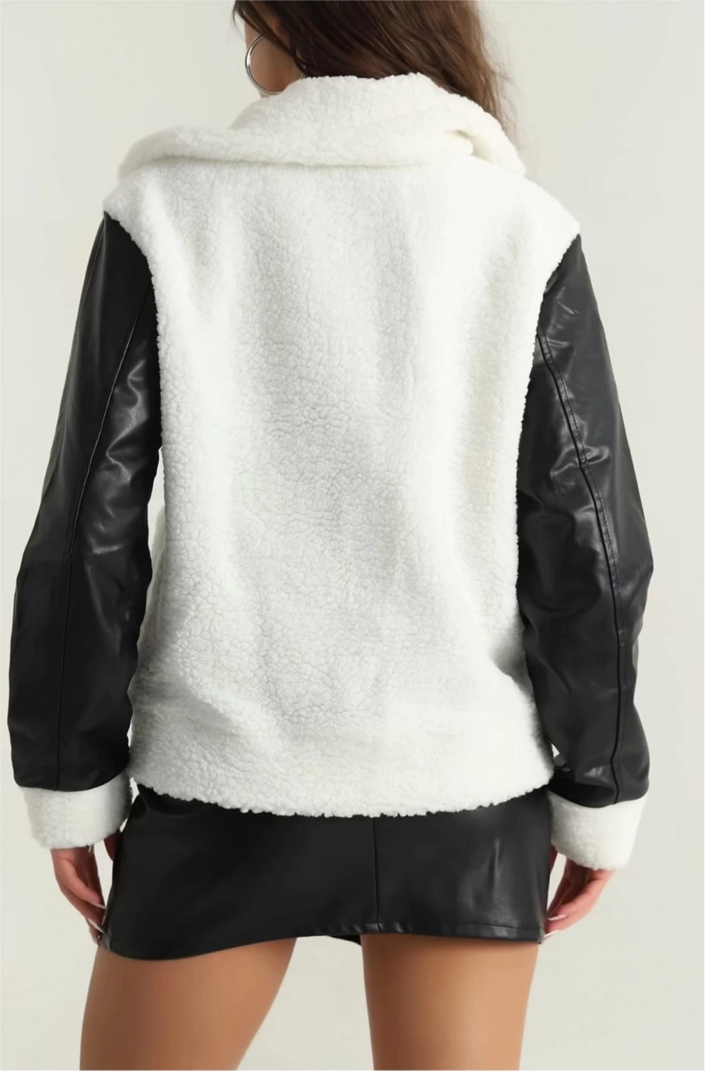 Deri garnili kuzu peluş mont beyaz t1220