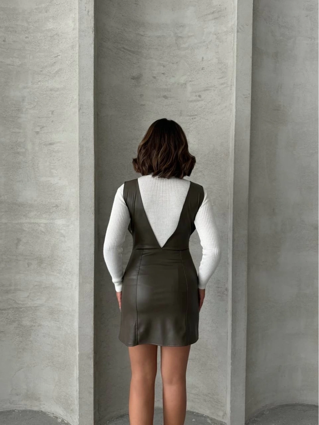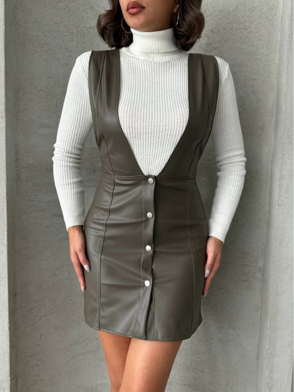 Şıklığı ve rahatlığı bir arada sunan Deri Jile Elbise Haki W24796, günlük şıklığınızı tamamlayacak bir seçenektir.