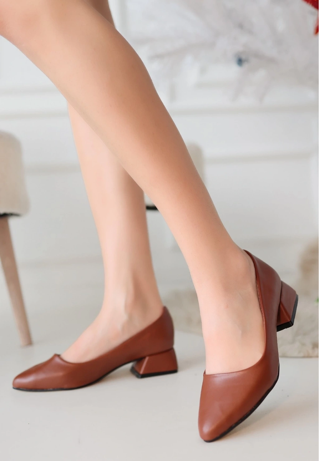 • Desniy Taba Cilt Topuklu Ayakkabı