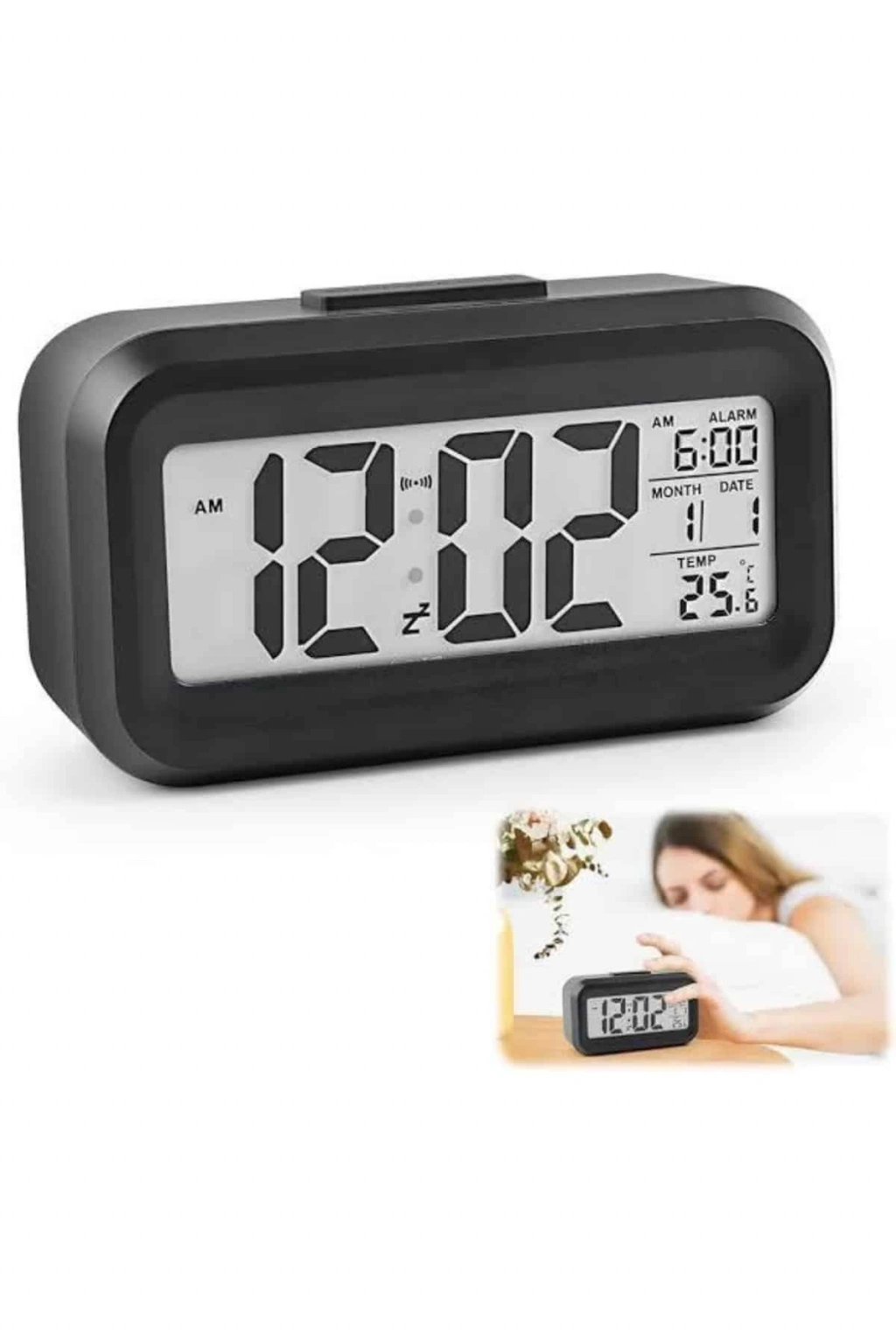 Şık ve kullanışlı tasarımıyla öne çıkan bu dijital masa saati, modern yaşam alanları için hem dekoratif hem de işlevsel bir çözüm sunar. Geniş dijital ekranı sayesinde saati, tarihi ve ortam sıcaklığını kolaylıkla görebilir; özellikle düşük ışıklı ortamlarda dahi ekranı net bir şekilde takip edebilirsiniz. Otomatik ışık sensörü sayesinde karanlıkta ekran kendiliğinden aydınlanır ve bu özellik gerektiğinde manuel olarak da aktive edilebilir. Aydınlatma sistemi, kısa süreli yanarak gereksiz enerji tüketiminin önüne geçer ve göz yormayan bir kullanım sağlar.Alarmlı yapısıyla sabahları zamanında uyanmanıza yardımcı olan bu saat, aynı zamanda tarih ve derece göstergeleriyle de gün boyu ihtiyacınız olan temel bilgileri sunar. Kompakt ölçüleri sayesinde çalışma masanızda, baş ucunuzda ya da ofis ortamında rahatlıkla yer bulabilir. Ayrıca sessiz çalışmasıyla gece boyunca rahatsızlık vermez.Ürün 4,3 x 15,1 x 7,7 cm boyutlarındadır ve 3 adet AA pil ile çalışır (piller dahil değildir). Kutusunda 1 adet fotoselli dijital masa saati bulunmaktadır. Pratikliği ve modern görünümüyle hem ev hem ofis kullanımı için ideal bir yardımcıdır.
