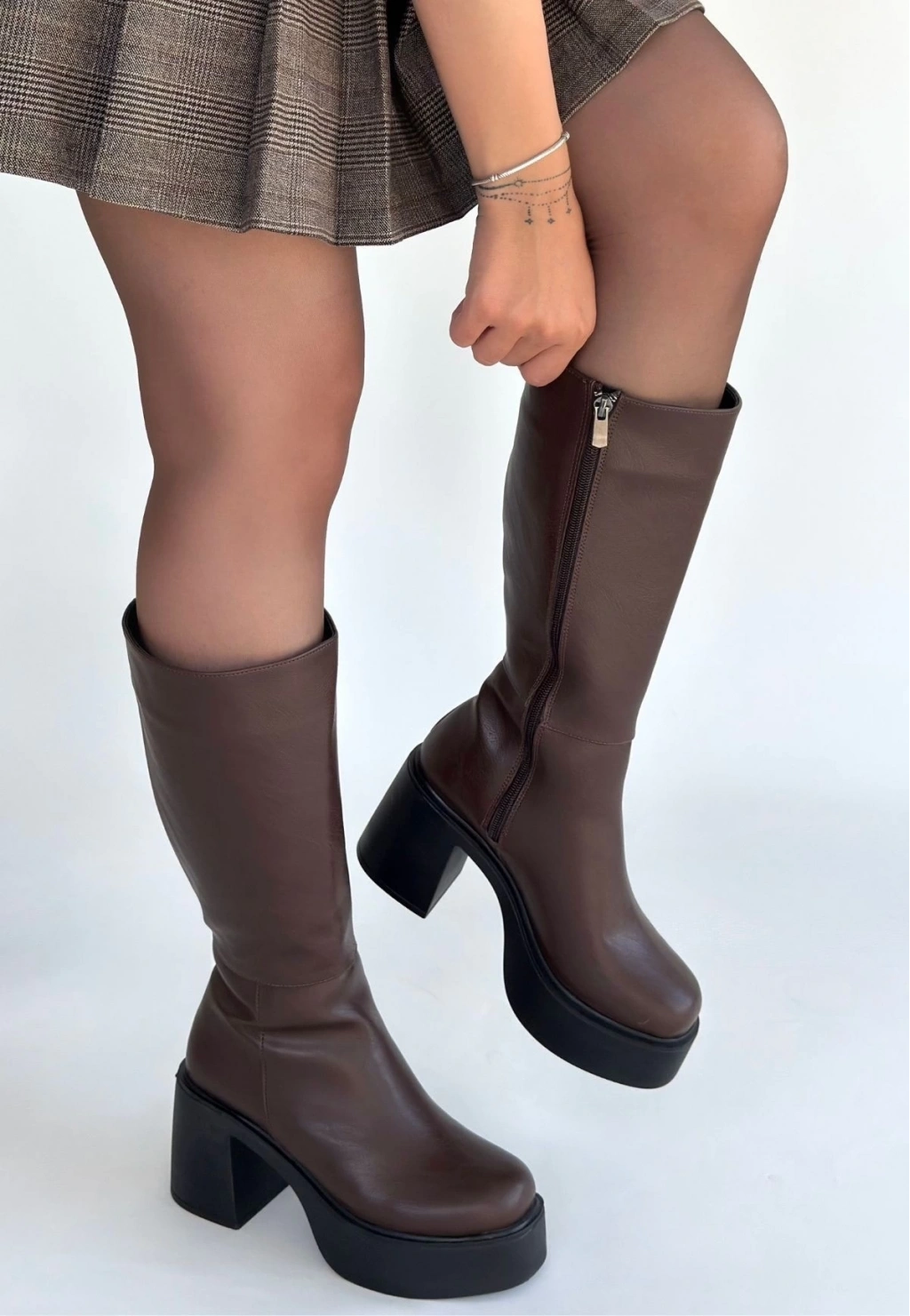 Disan Kahverengi Cilt Topuklu Çizme