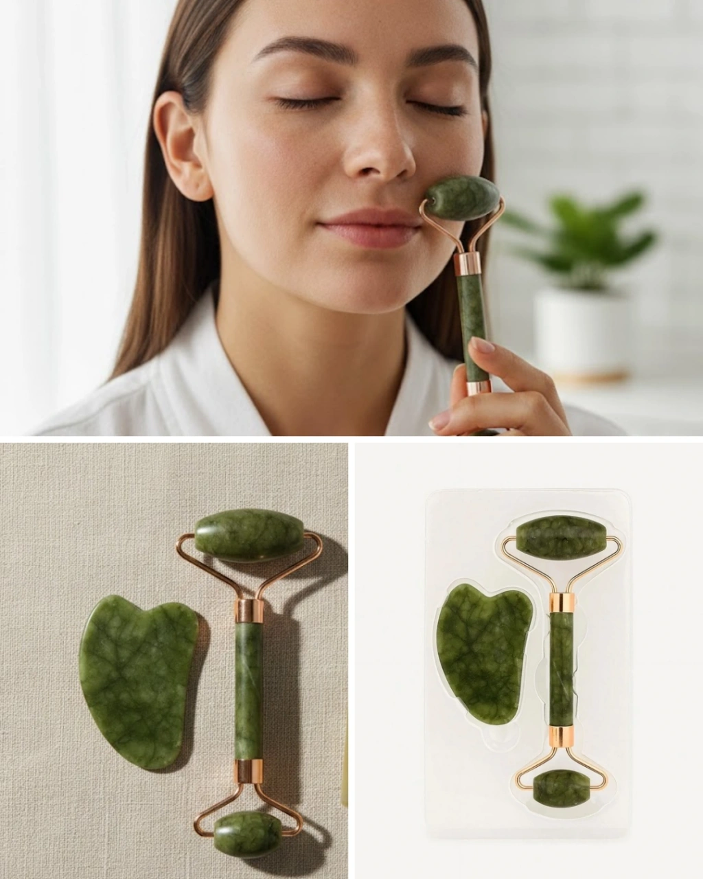 Doğal Yeşim Taşı Yüz Masaj Roller ve Gua Sha Seti 2 Parça