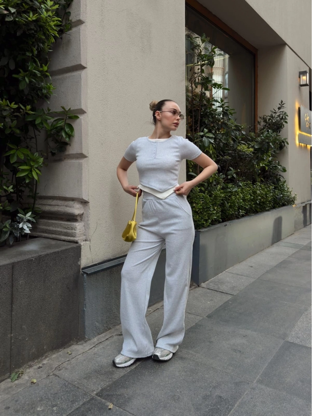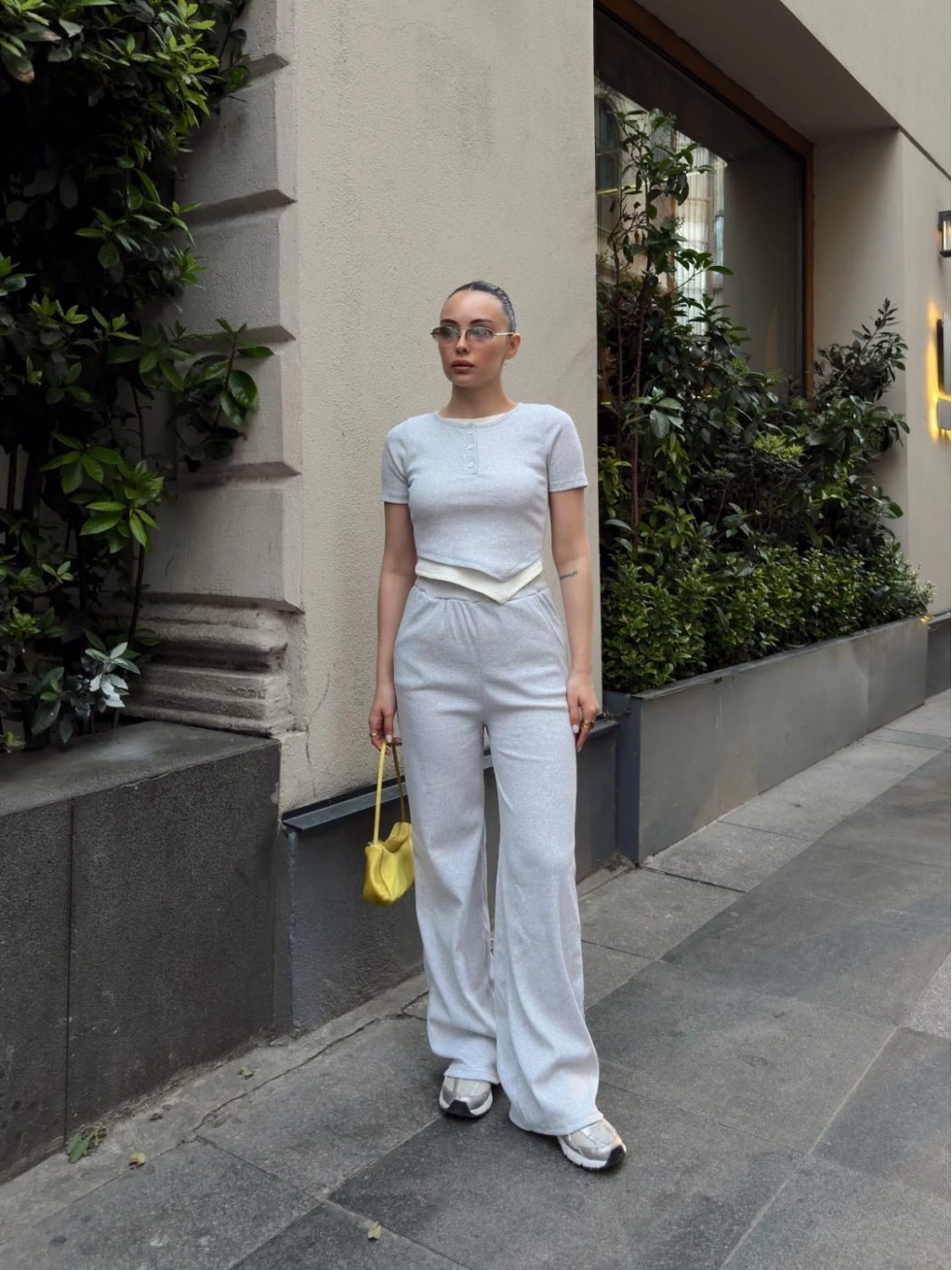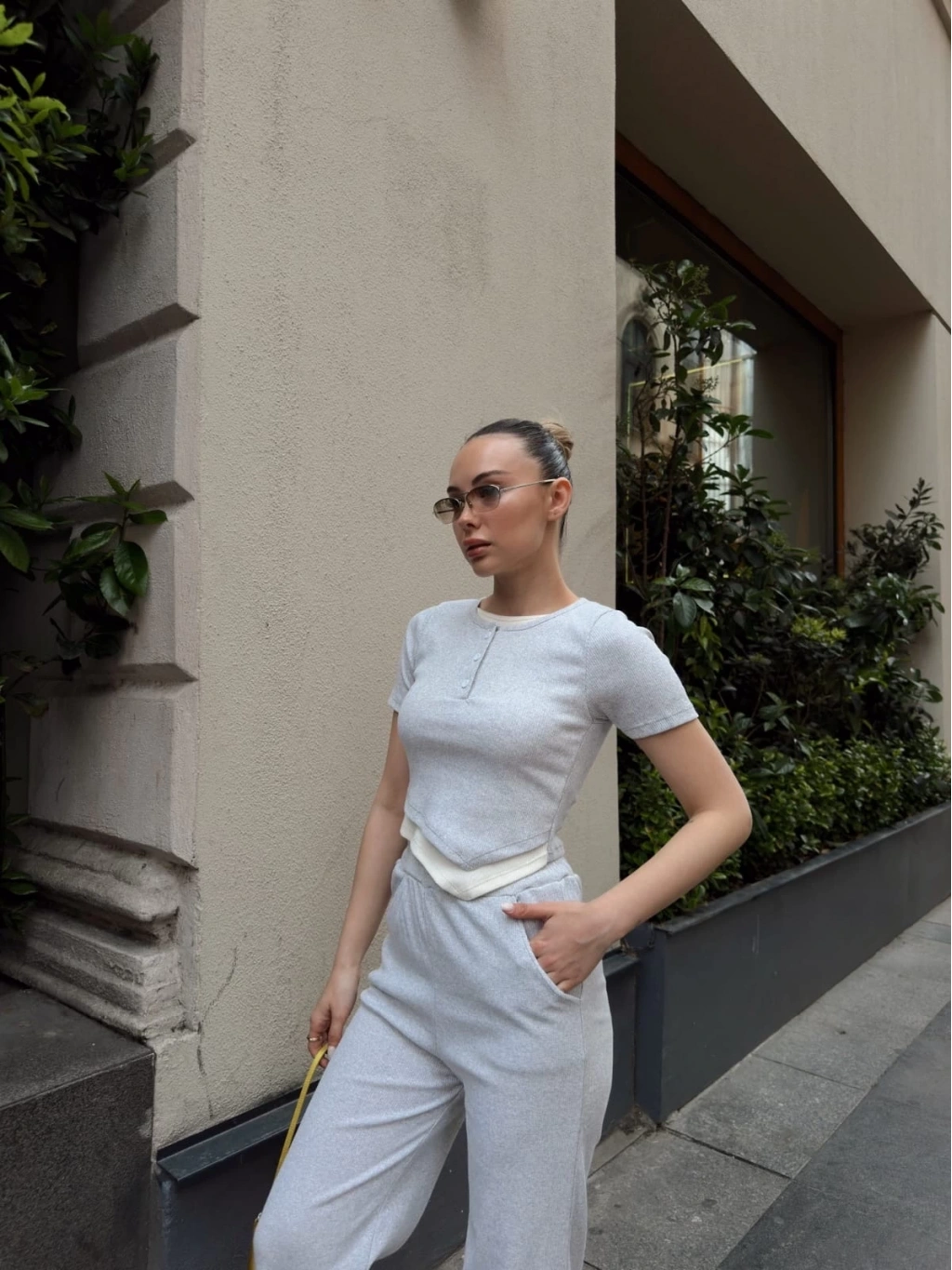 Şıklığı ve rahatlığı bir arada sunan Düğme Yakalı Gri Alt Üst Takım S3943, kadın giyim kategorisindeki favori tercihlerden biridir.