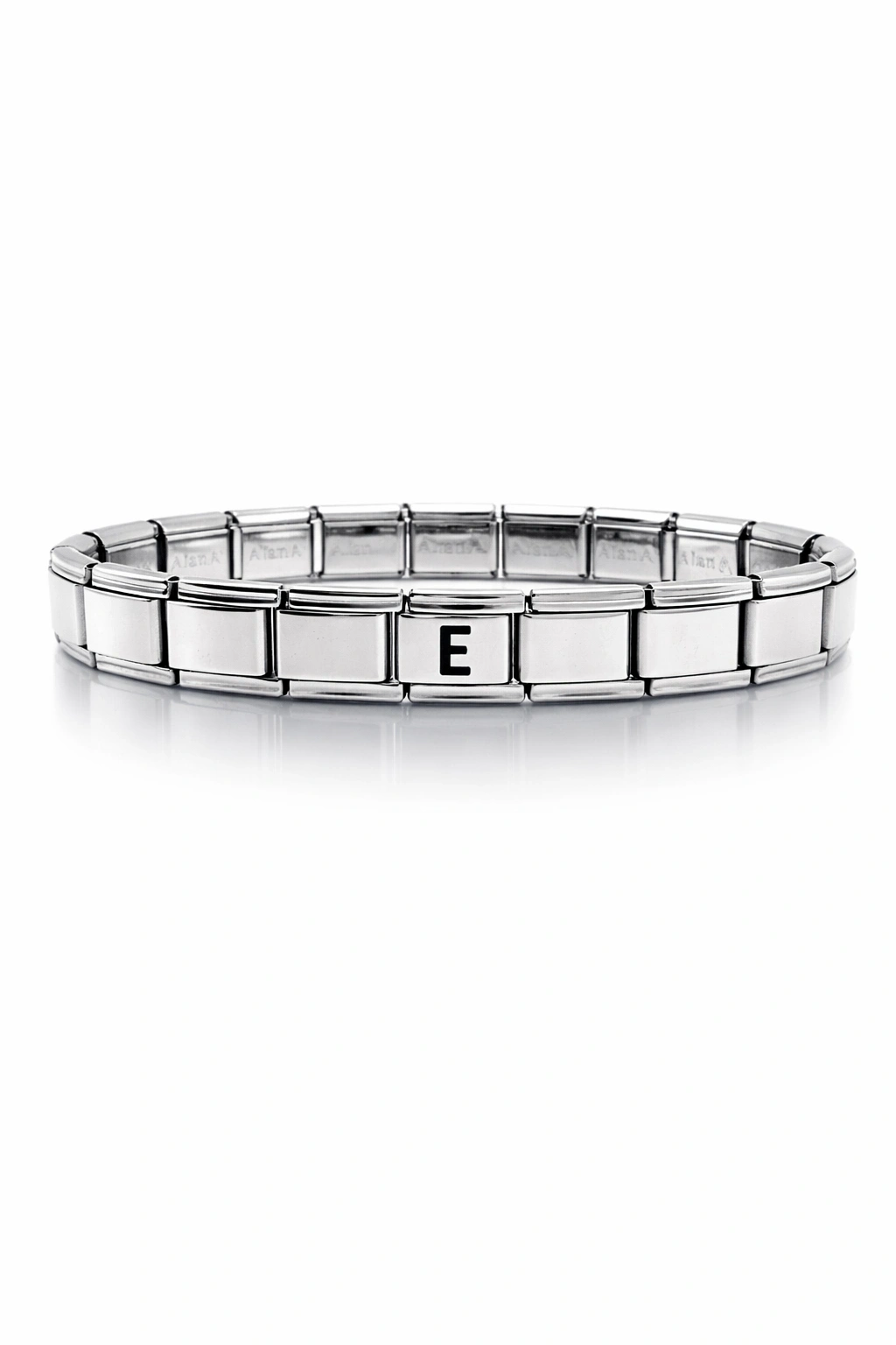 E Harfli Çelik Bileklik – Kişiye Özel Paslanmaz Çelik Kadın Bileklik – Esnek İtalyan Model