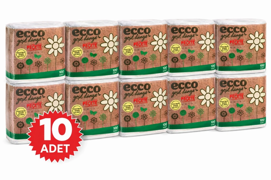 Ecco Green Kağıt Peçete 100’lü 10 Adet Ekonomik Toplu Set