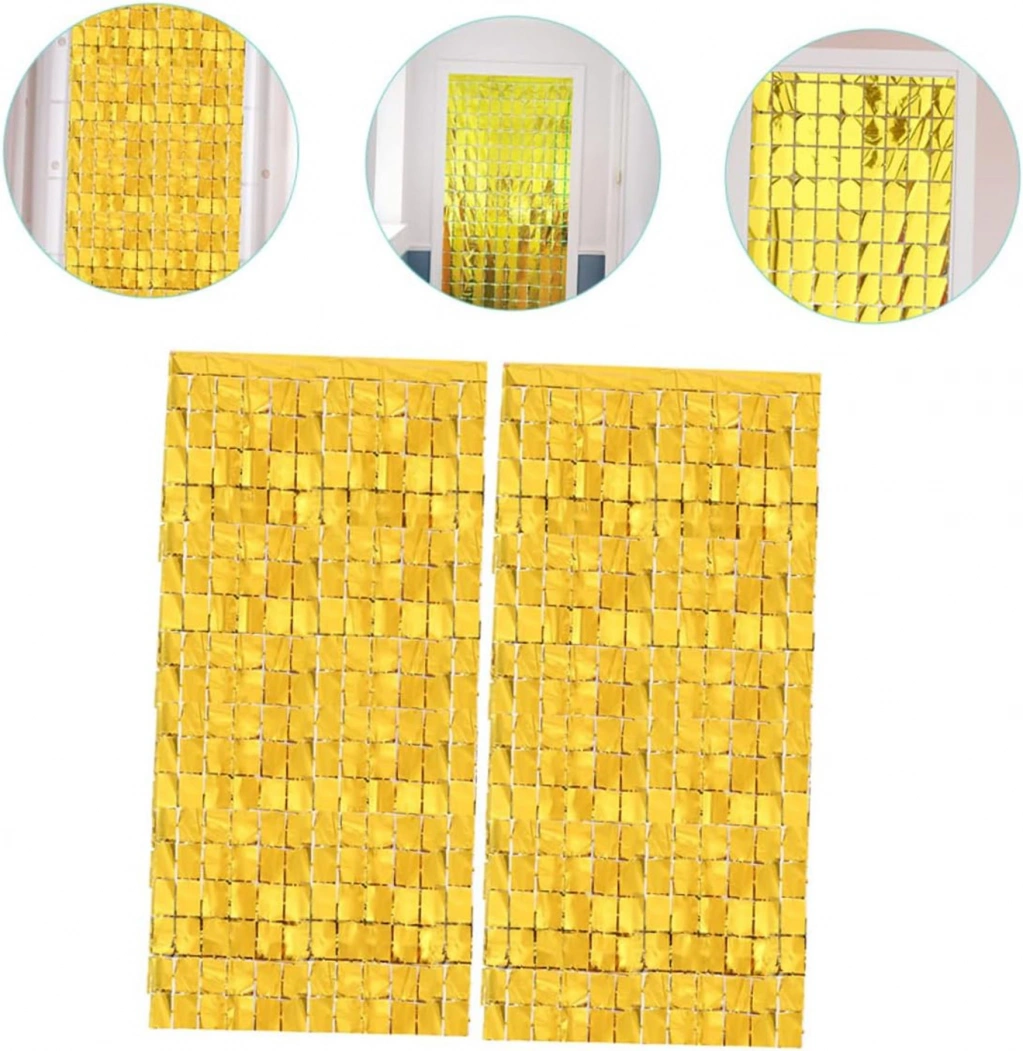 Ekstra Metalize Altın Renk Dikdörtgen Kesim Kapı Perdesi Dekorasyon 1x2 Metre, evinizin atmosferini göz alıcı bir ışıltıyla dönüştürmek için ideal bir üründür. Metalize altın rengi ve zarif dikdörtgen kesimiyle şıklık ve modernliği bir araya getirir. Kapı perdesi olarak kullanabileceğiniz gibi, duvar dekorasyonu veya pencere süslemesi olarak da farklı kullanım alanları sunar.