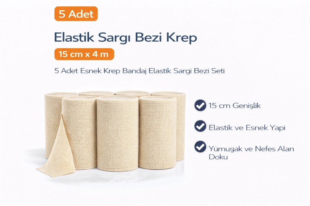 Elastik Sargı Bezi Krep 15 cm x 4 m 5 Adet Esnek Krep Bandaj Elastik Sargı Bezi Seti