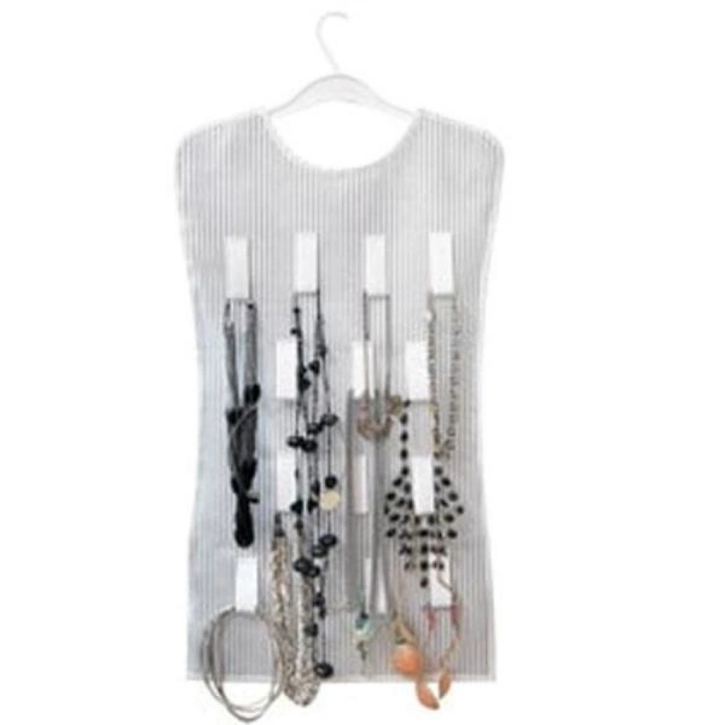 Böylece bir tarafta açık cepler ve diğer asılı döngüler ile kolayca takı koleksiyonunu görebilirsiniz