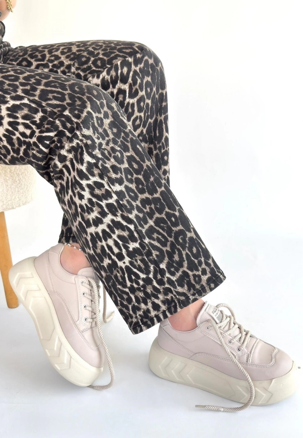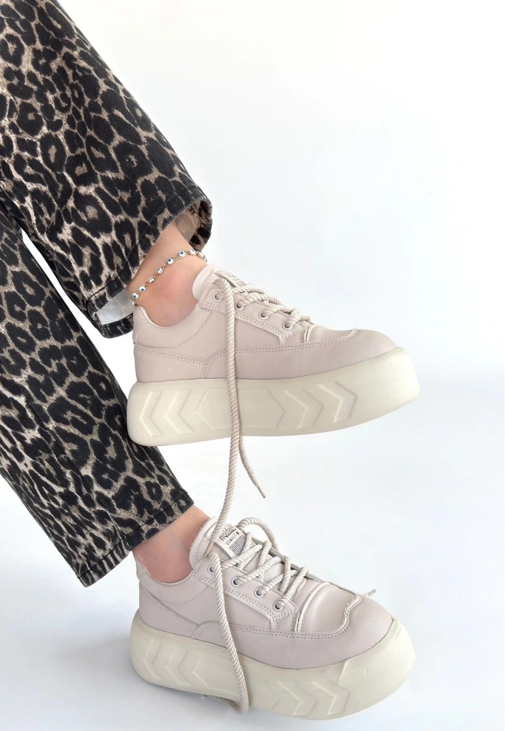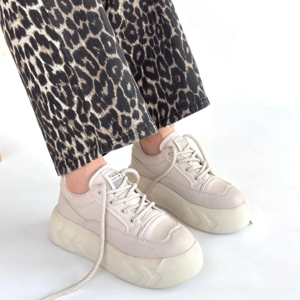 • Emwa Bej Cilt Bağcıklı Spor Ayakkabı
