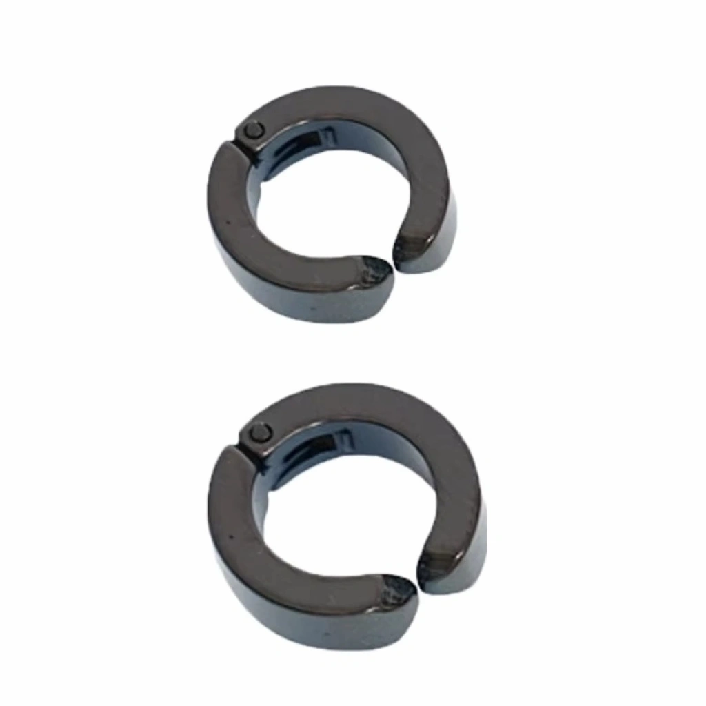 2 Adet Erkek Küpesi - Siyah Çelik Kıstırmalı Küpe Paslanmaz Atmaz Çelik Siyah Küpe