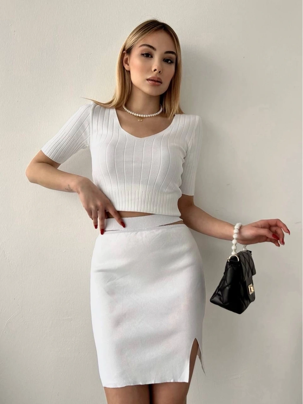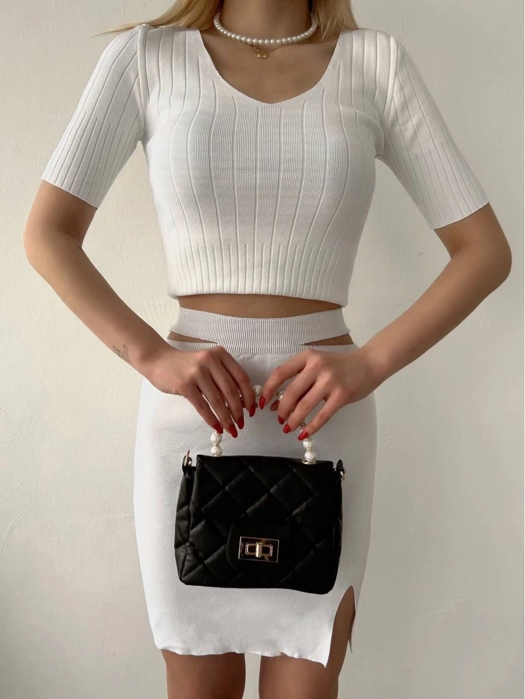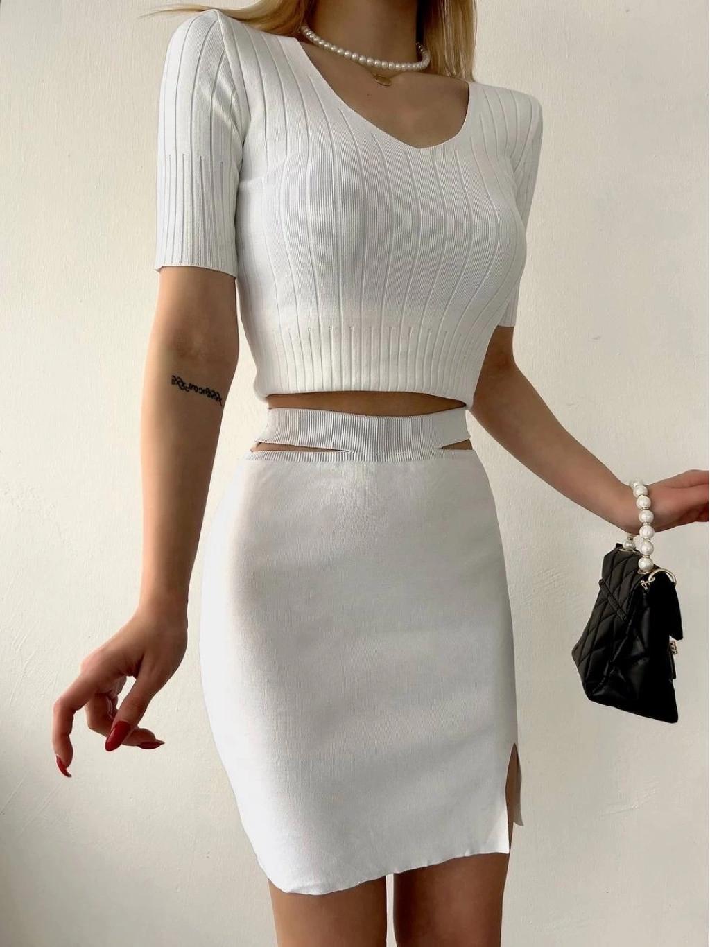 • Etekli triko takım beyaz t23107