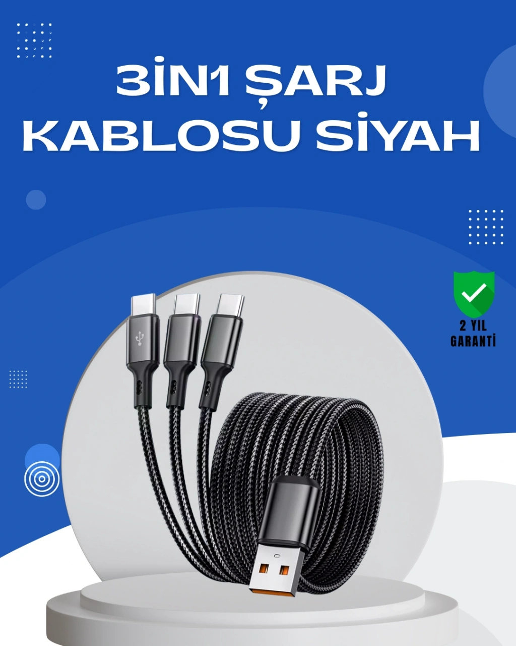 Evrensel 3 Başlıklı Şarj Kablosu – iPhone Huawei Samsung İçin
