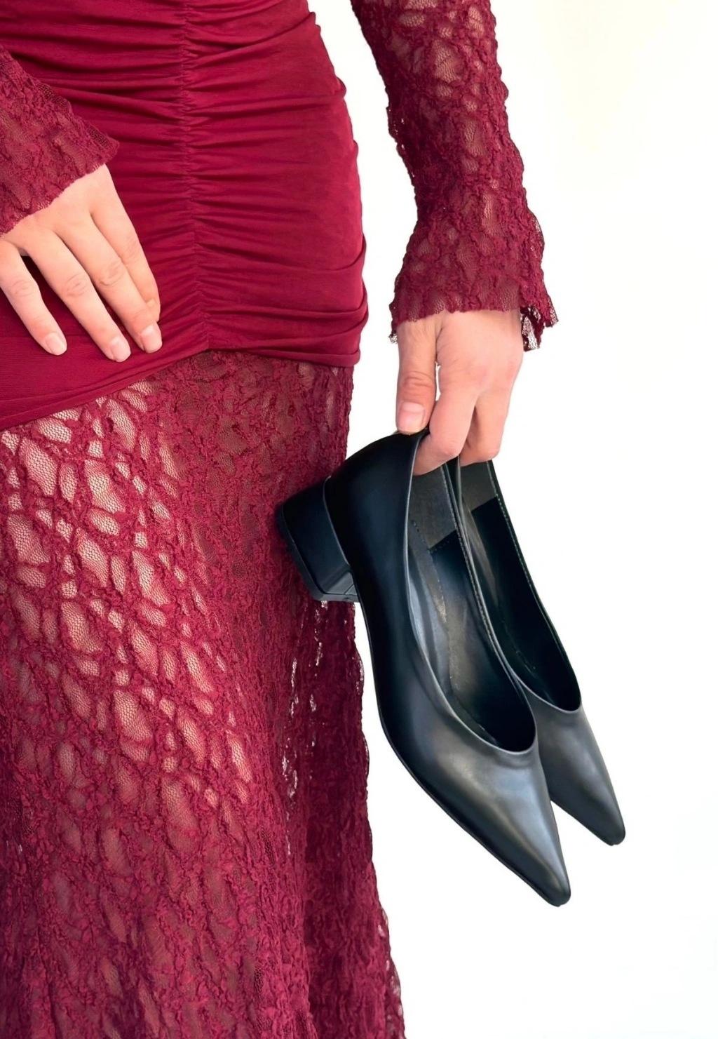 • Ferla Siyah Cilt Topuklu Ayakkabı