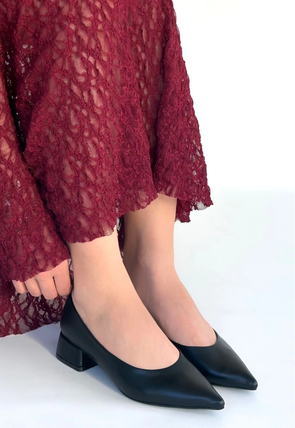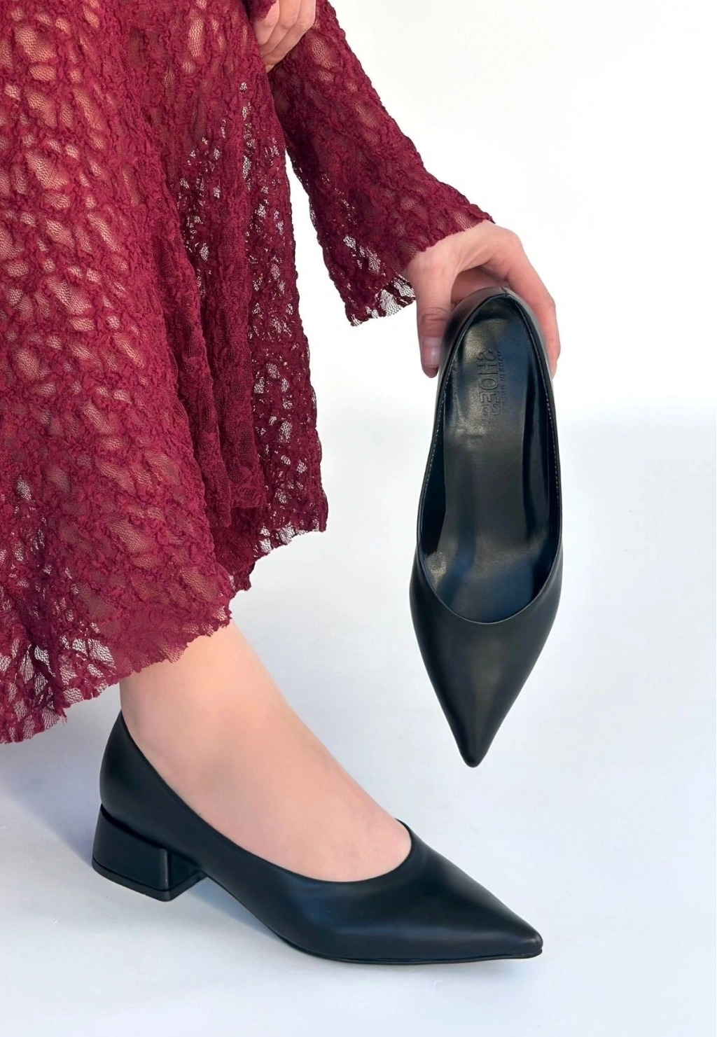 Ferla Siyah Cilt Topuklu Ayakkabı