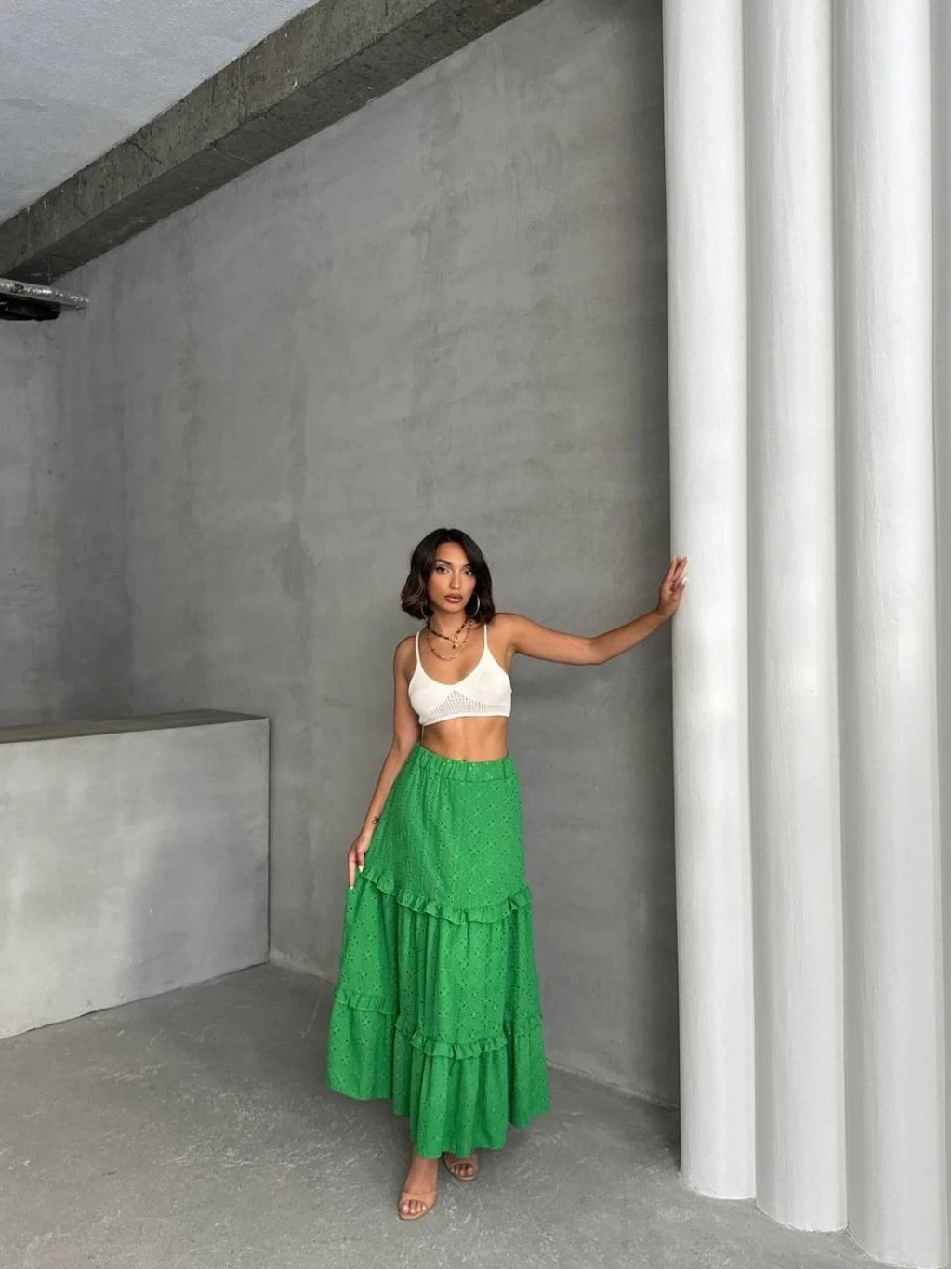 • Fırfırlı brodeli astarlı uzun etek yeşil s255047