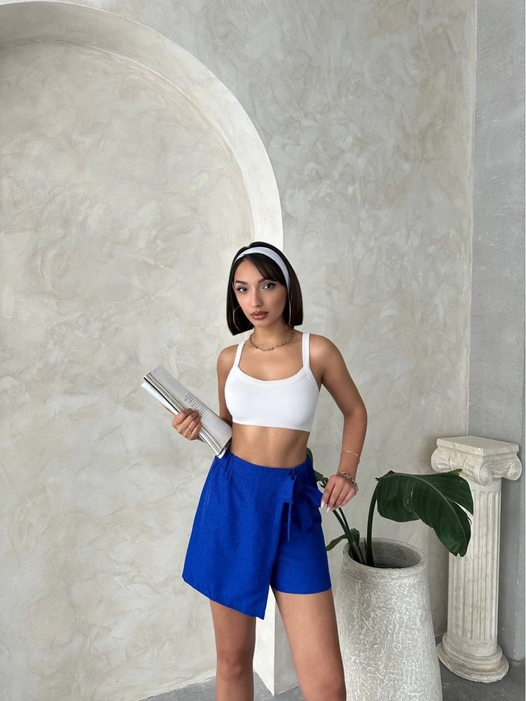 Yaz aylarının vazgeçilmezi şort etek modellerinden biri olan Fiyonklu Şort Etek Saks S255021, şıklık ve rahatlığı bir arada sunuyor.