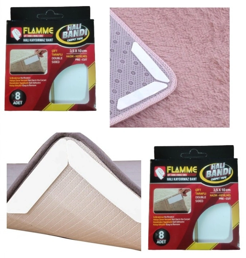 Kullanımı kolay olan Flamme Halı Kaydırmaz Pedler 8 Adet halınızın veya kiliminizin kenarlarına yerleştirmeniz yeterlidir