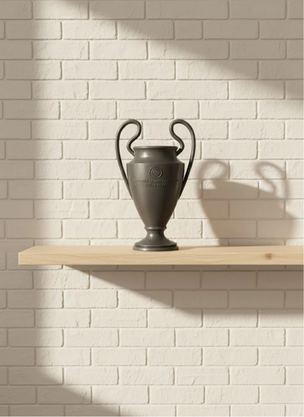 25 cm boyutundaki Füme Kupa, yüksek detaylı tasarımı ve sağlam gövdesiyle koleksiyon ürünleri arasında öne çıkan bir dekor objesidir. UEFA tarzı ikonik kupa formu, spor tutkusunu estetik bir şekilde yansıtır. Masaüstü dekorasyonunda şık, sade ve modern bir duruş sağlar. Hem ev hem ofis kullanımına uygundur. Spor odaları, genç odaları, çalışma masaları veya raflarda sergilendiğinde güçlü bir görsel etki yaratır. Dayanıklı malzemeden üretilmiş olup uzun süreli kullanım için idealdir. Futbol tutkunu sevdiklerinize hediye edebileceğiniz özel ve anlamlı bir parçadır.