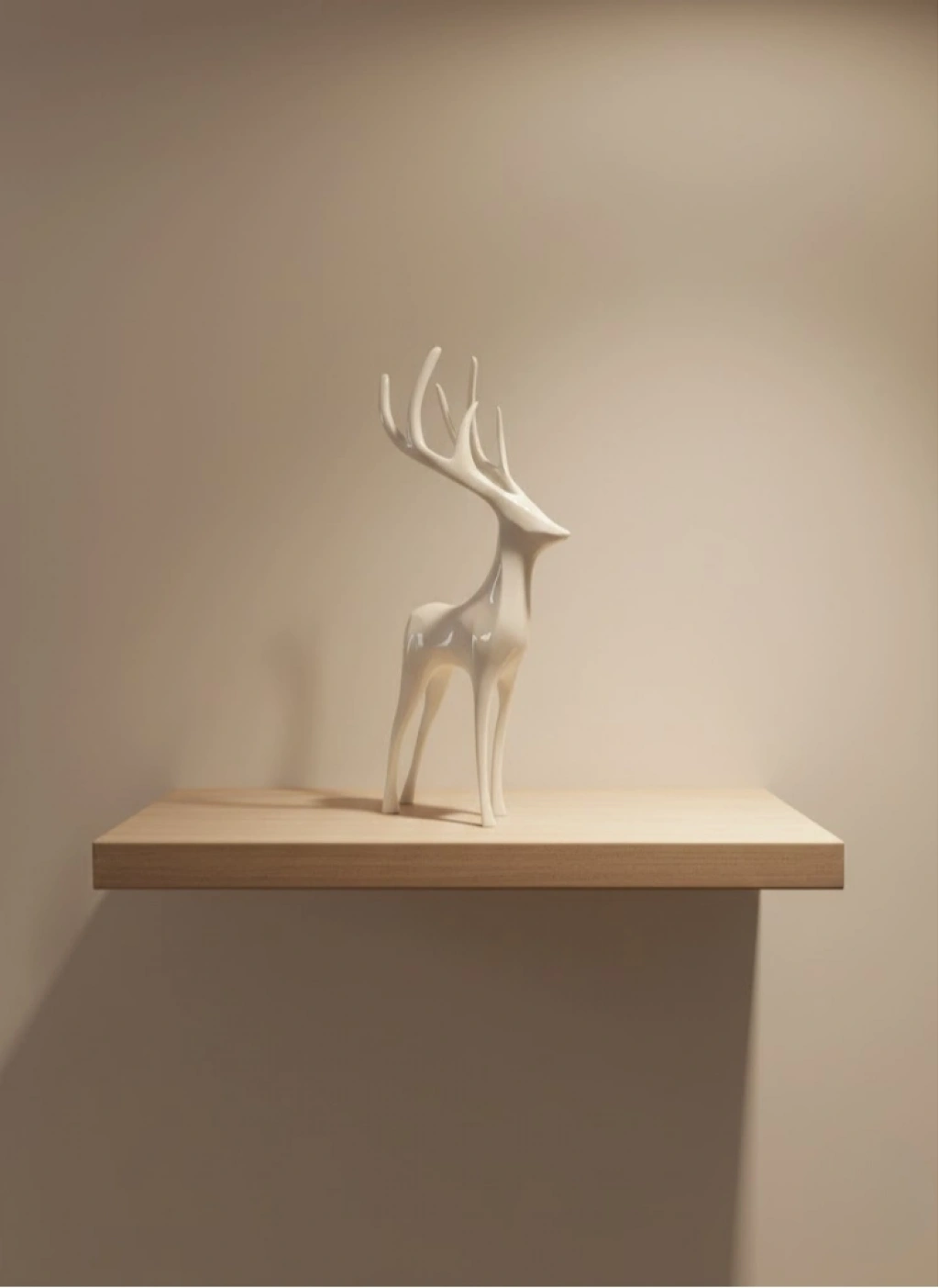 Geyik Figürü Beyaz Modern Salon ve Raf Dekoru