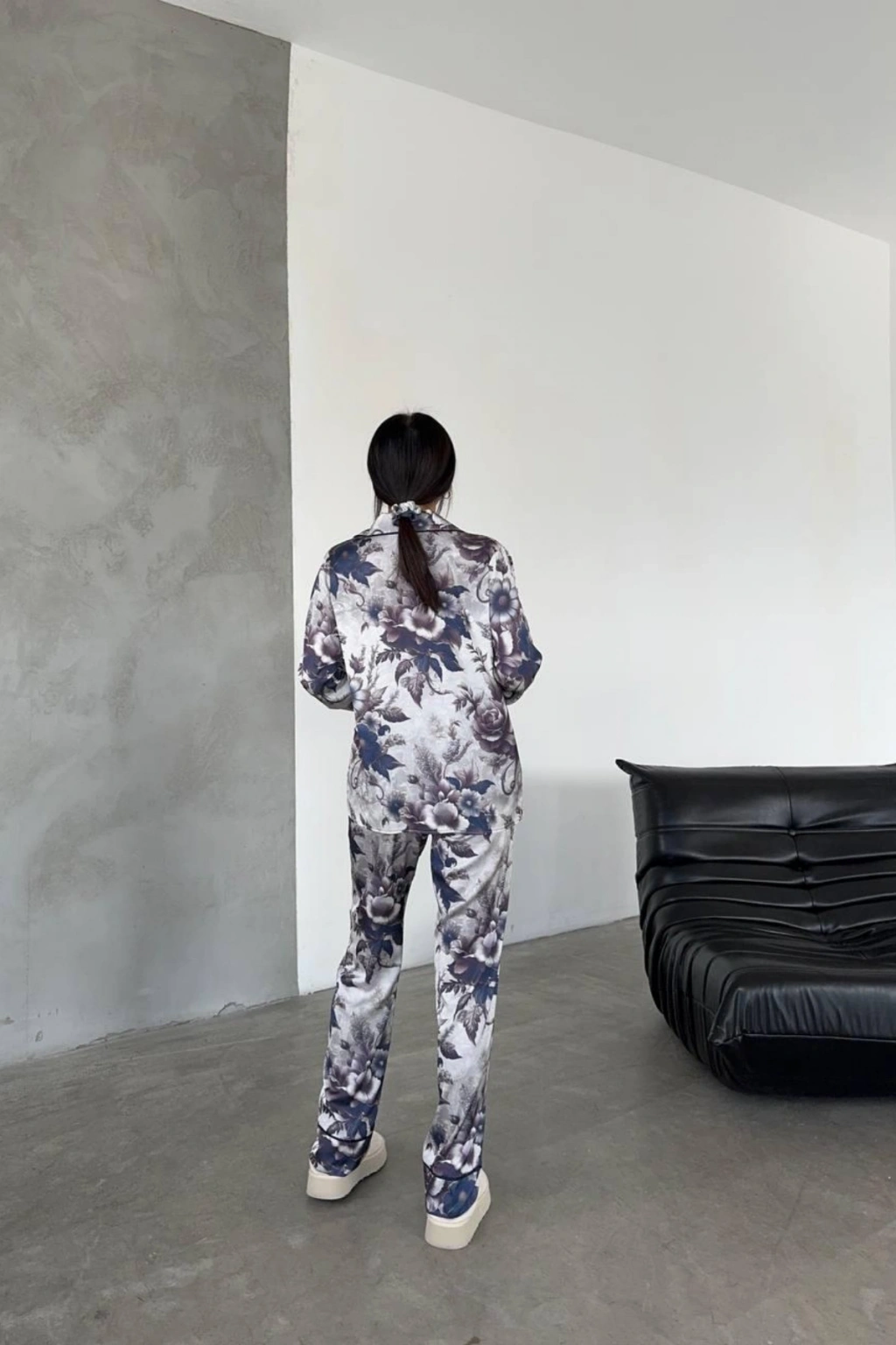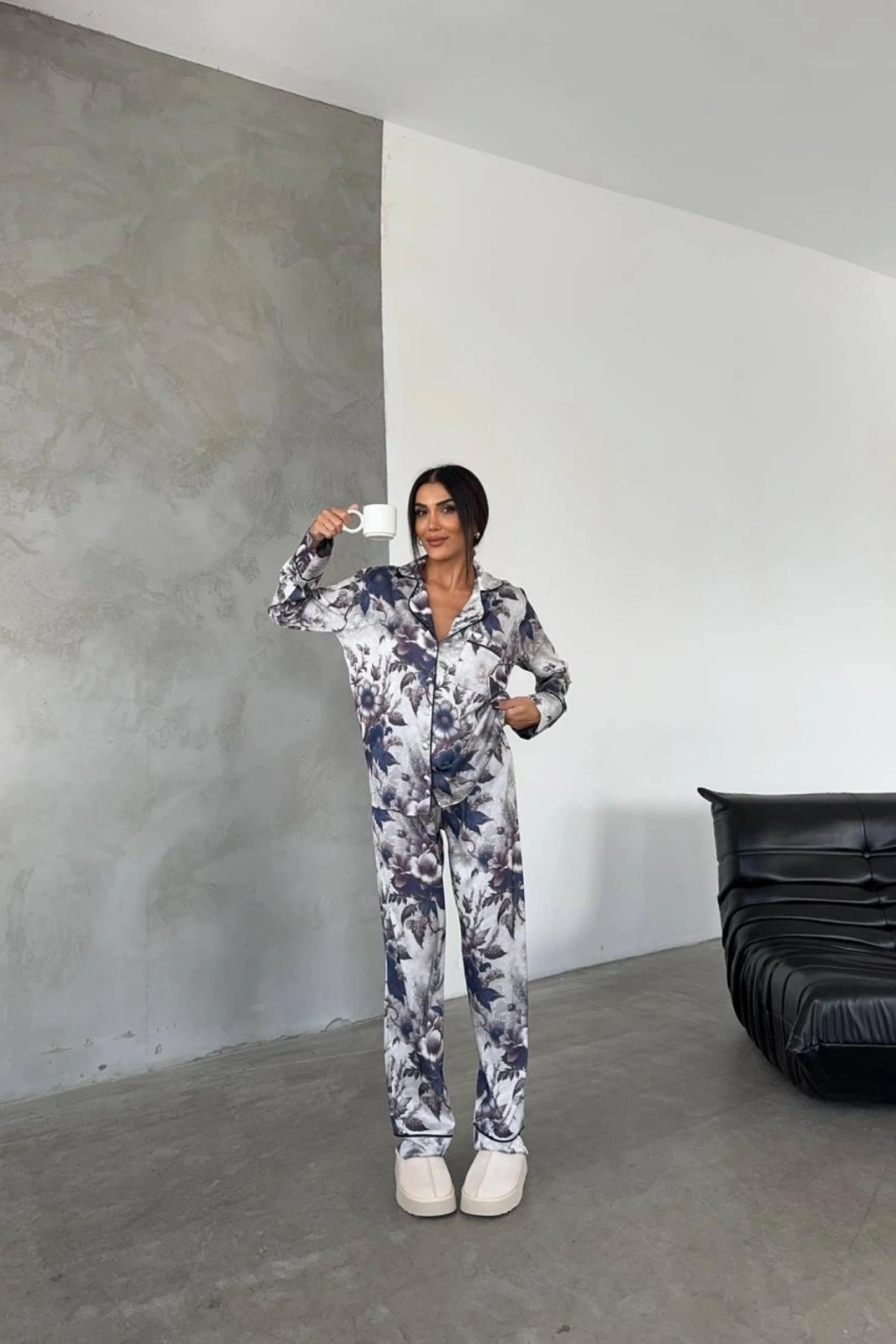 GİZOTTİ ÇİÇEK DESEN DİJİTAL BASKILI UZUN SATEN PİJAMA