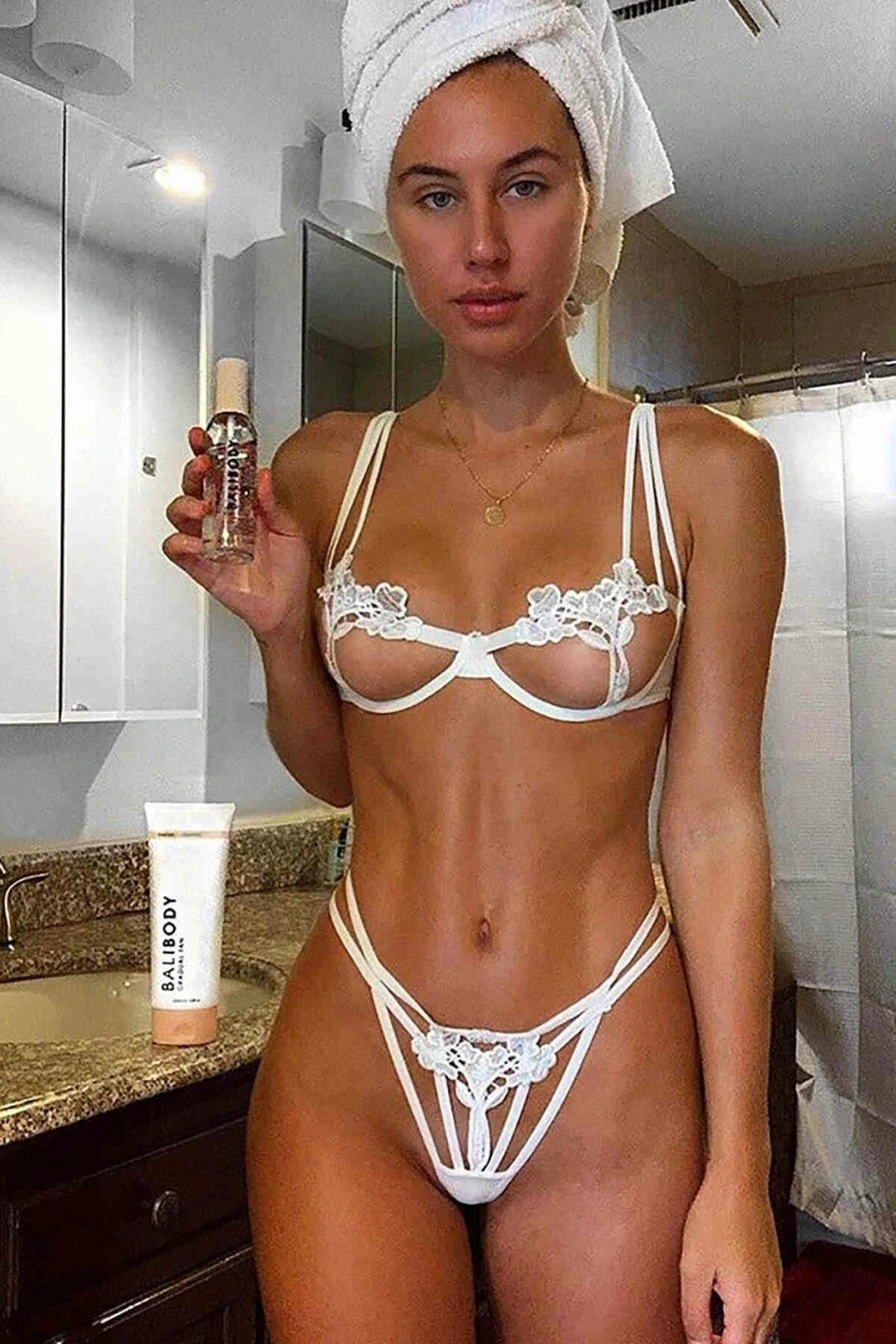 Gizotti Seksi Kadın Sütyen Külot Takım Fantezi İç Giyim Beyaz