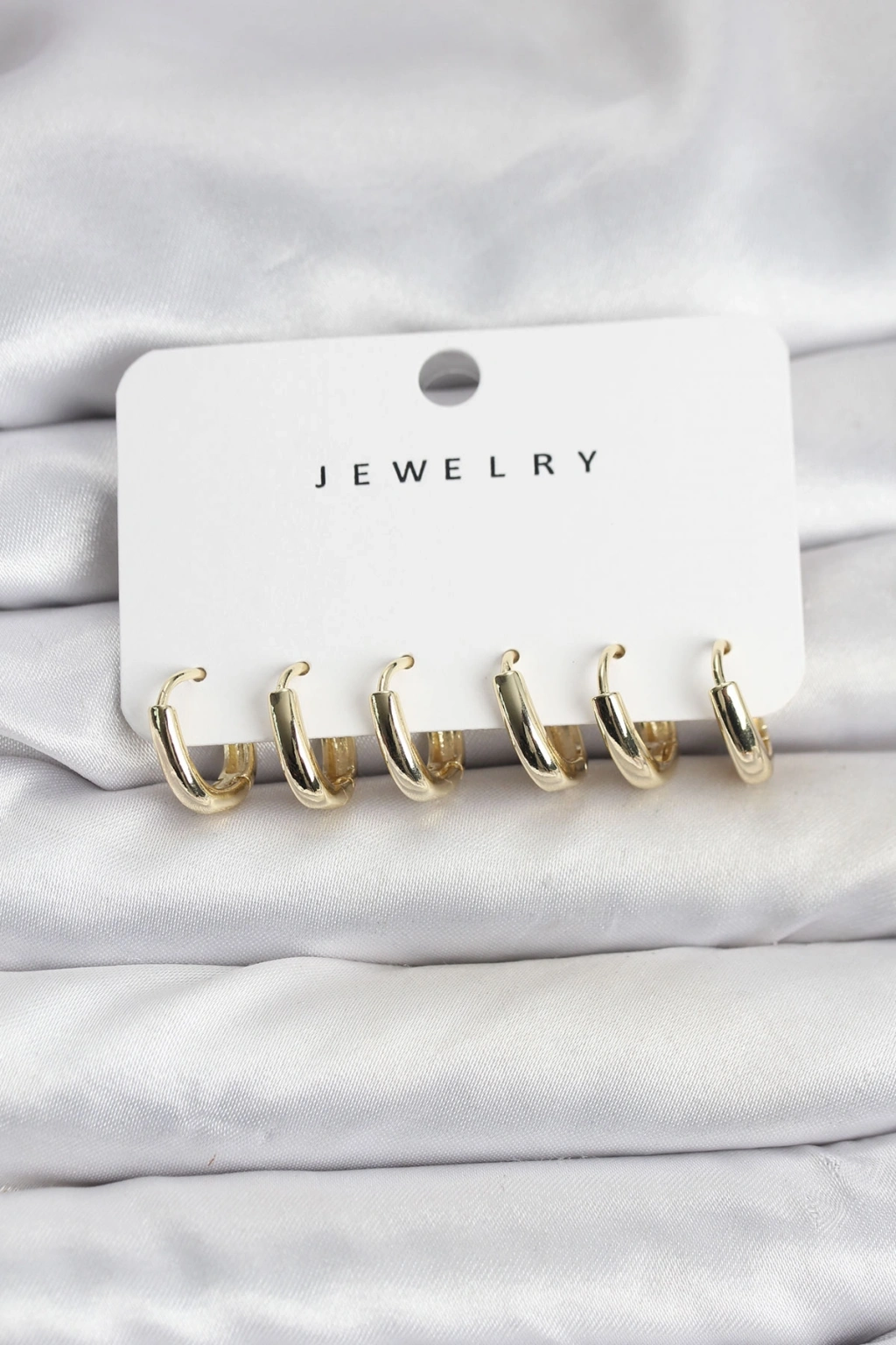 Gold Renk Pirinç Halka Kadın Küpe Seti