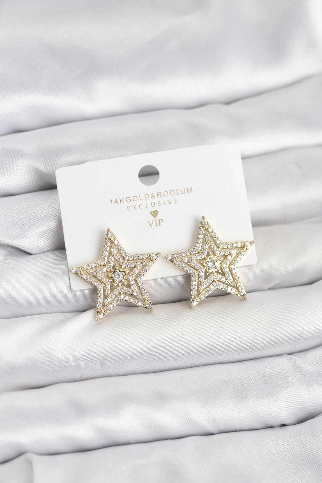 Gold Renk Pirinç Zirkon Taşlı Yıldız Model Kadın Küpe