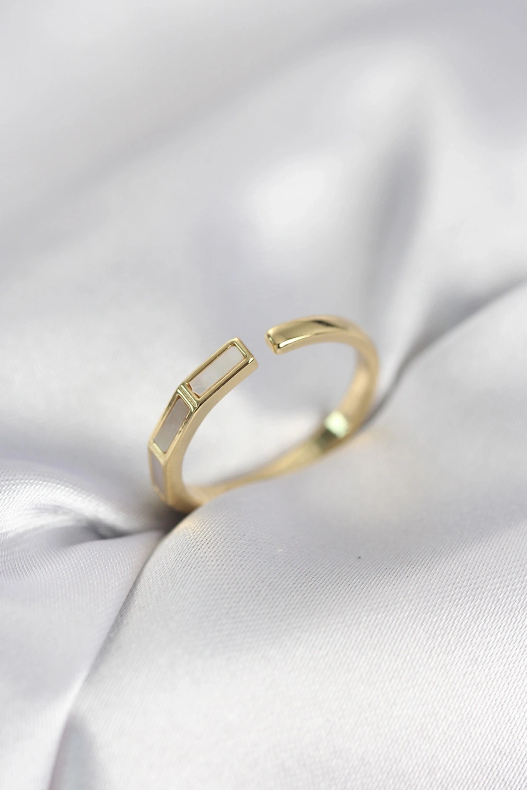 Gold Renk Sedefli Çubuk Model Kadın Yüzük