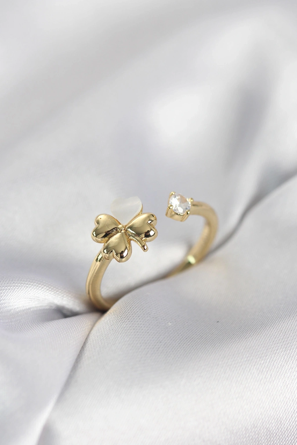 Gold Renk Yonca Model Sedefli Kadın Yüzük