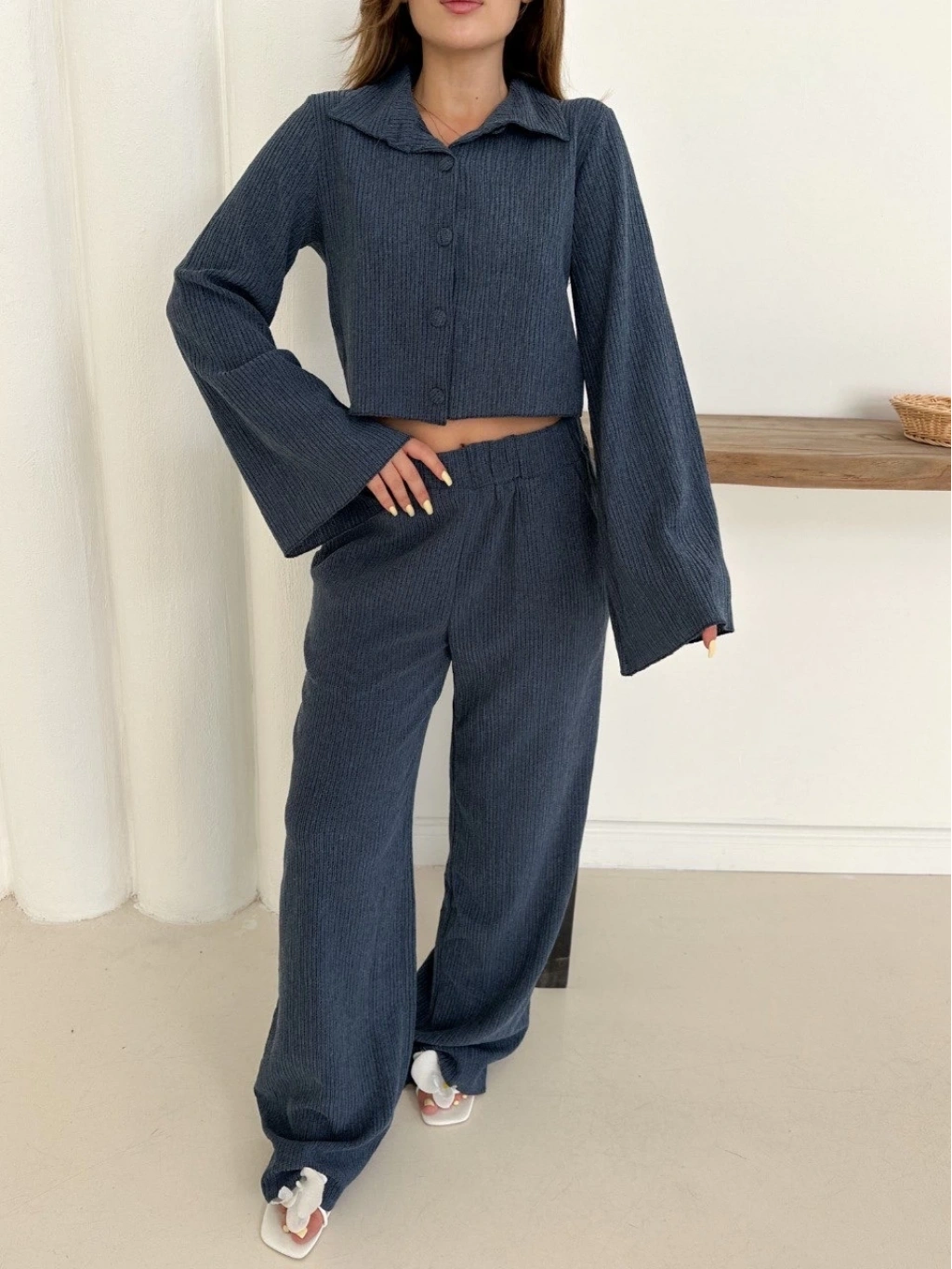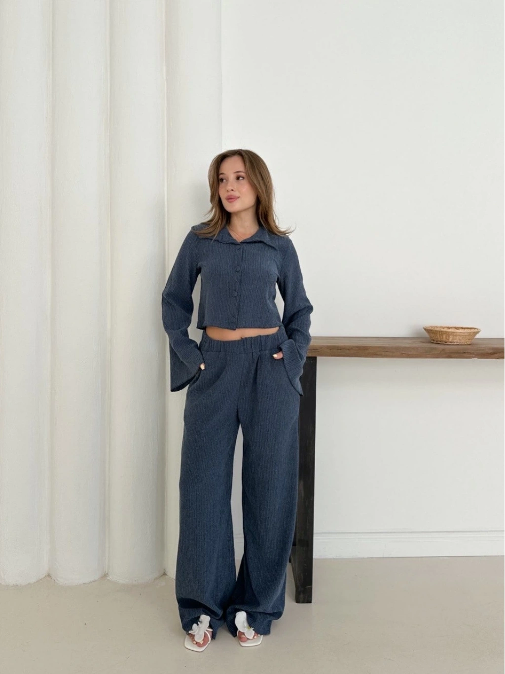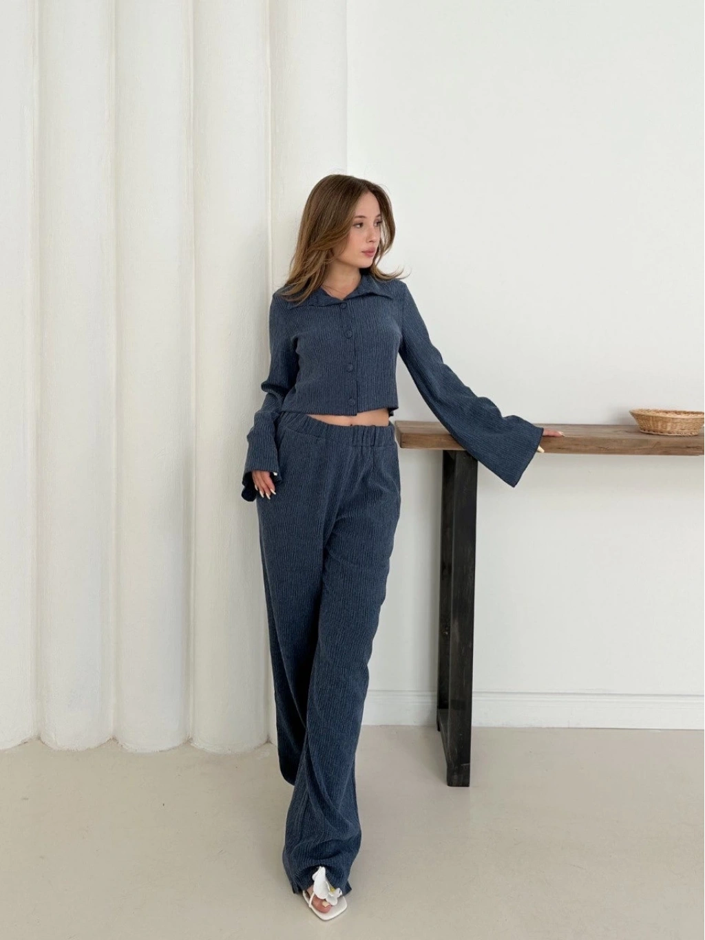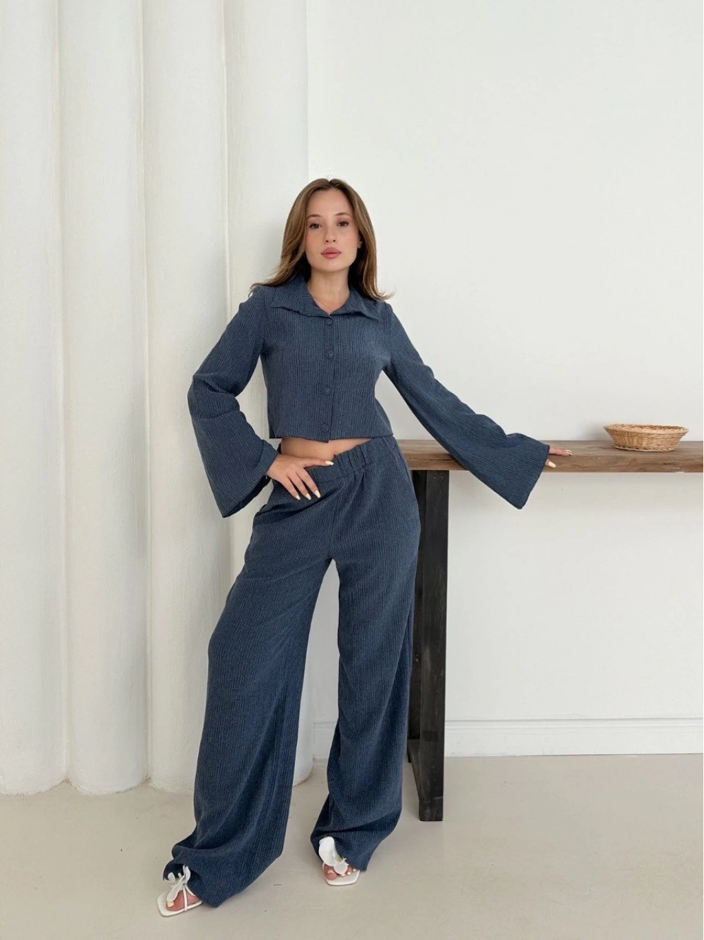 Farklı ve şık bir görünüm için ideal bir seçenek olan Lacivert Gömlek Yaka Kaplama Düğmeli Takım, gardırobunuzun vazgeçilmezi olmaya aday! Hem şıklığı hem de rahatlığı bir arada sunan bu takım, kusursuz bir tarz yaratmanıza yardımcı olacak.