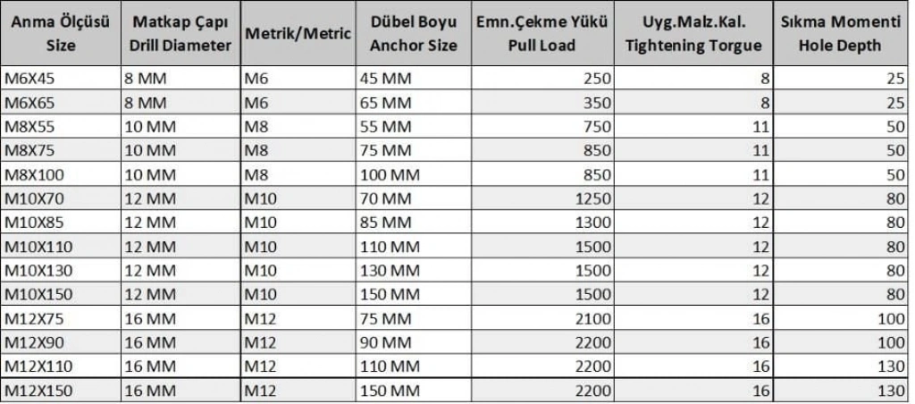 Gömlekli Çelik Dubel M12X110 ( 5 Adet)
