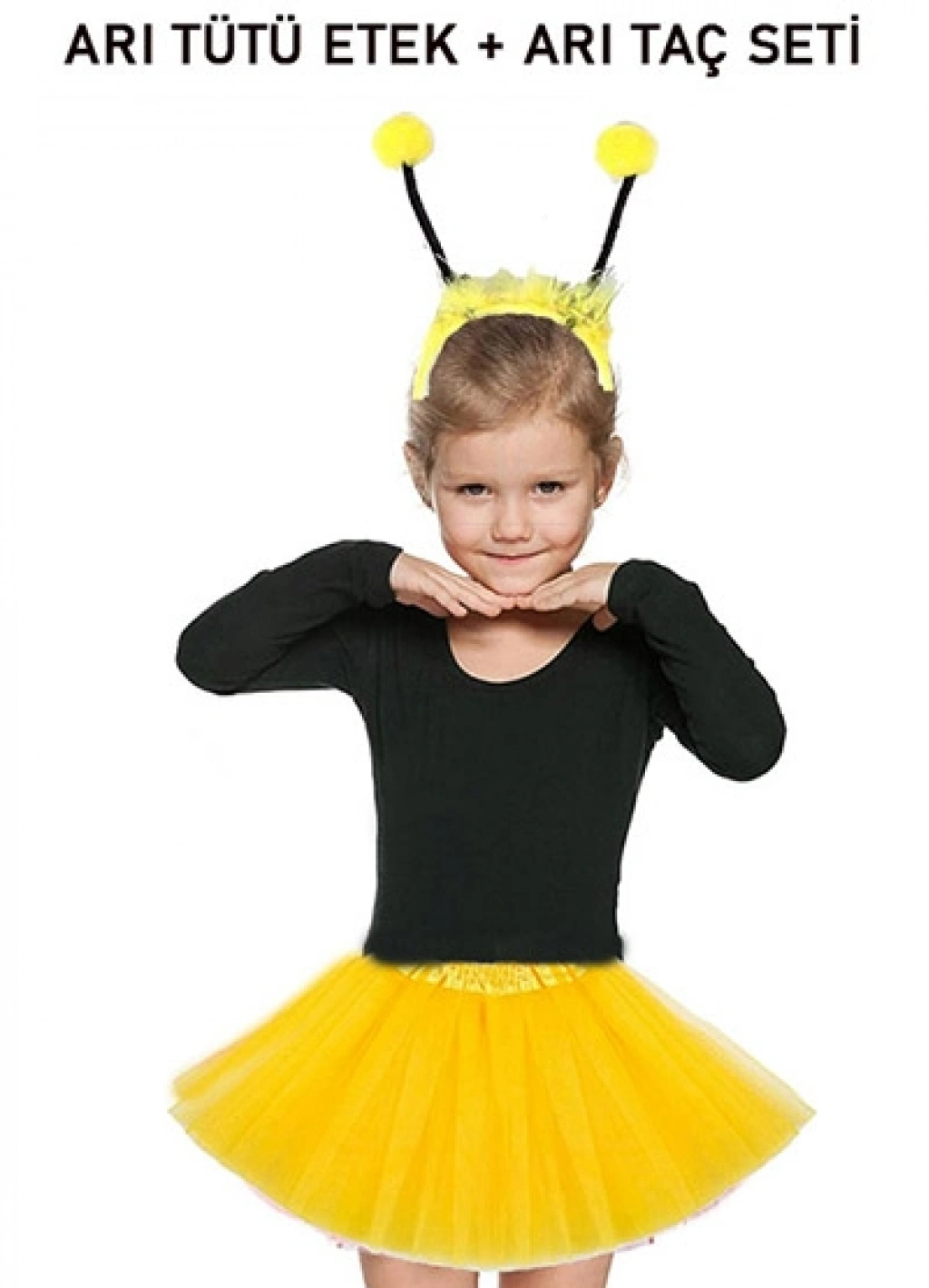 Gösteriler İçin Sarı Arı Tütü Etek ve Sarı Ponponlu Arı Taç Seti
