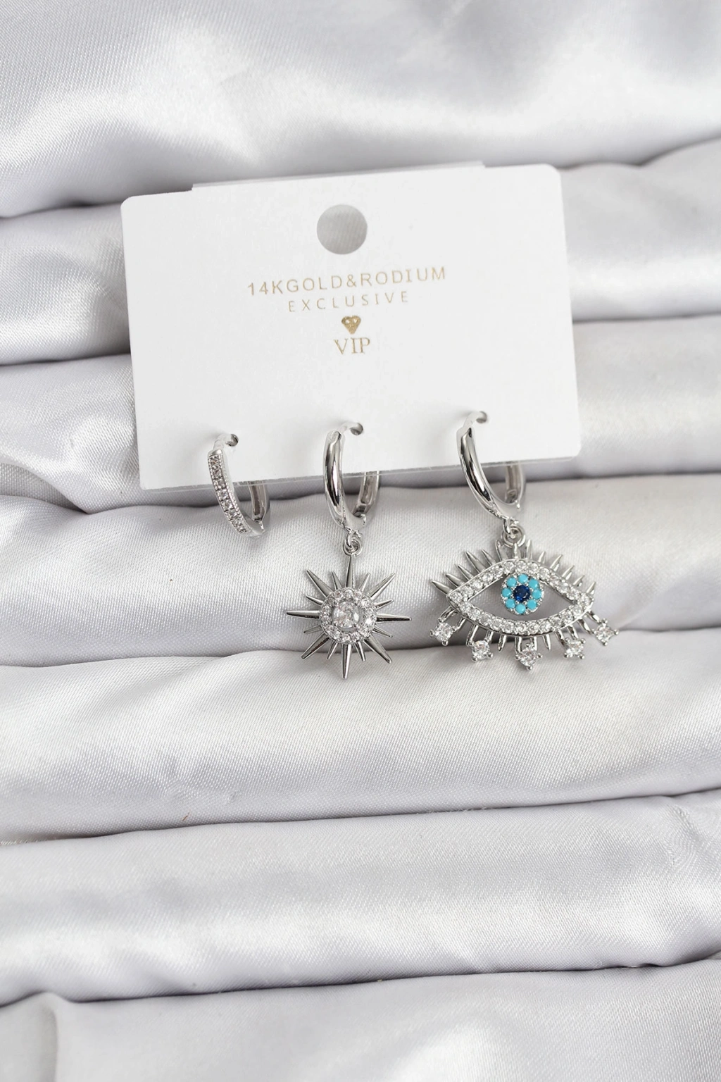 Göz Model Gümüş Renk Pirinç 3'lü Kadın Küpe Seti
