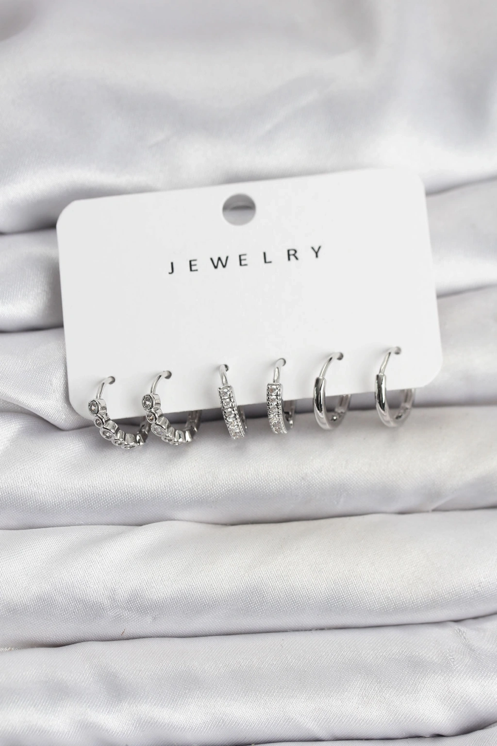 Gümüş Renk Pirinç Zirkon Taşlı Kadın Küpe Seti