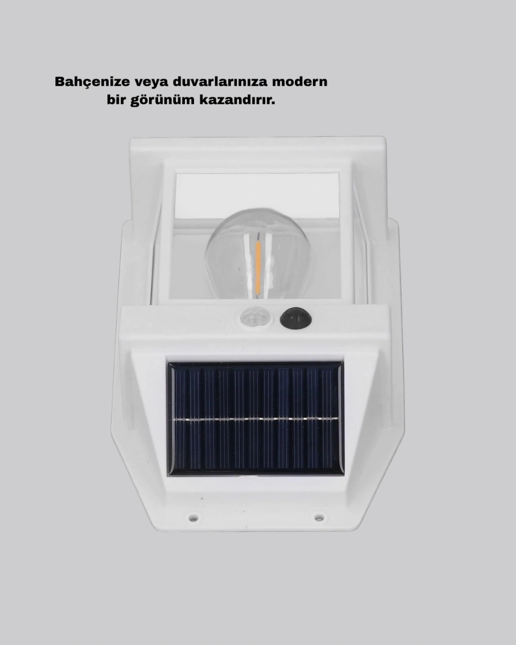 Güneş Enerjili Dış Mekan Sensörlü Duvar Lambası, çevre dostu tasarımı ve yüksek verimliliğiyle dış mekan aydınlatmasında mükemmel bir çözümdür.Kablolama gerektirmeden, doğrudan güneş ışığıyla şarj olur ve 1800 mAh dahili bataryası sayesinde gece boyunca otomatik olarak yanar.Üç farklı çalışma modu sayesinde kullanım alanınıza göre özelleştirilebilir: Hareket sensörlü mod: Sadece hareket algılandığında yanar. Işık sensörlü mod: Gün batımında otomatik yanar, gün doğumunda kapanır. Sabit ışık modu: Sürekli aydınlatma sağlar.120°’lik geniş algılama açısı ve 8 metreye kadar hareket mesafesiyle, bahçe, garaj, veranda, çit ve duvar aydınlatması için idealdir.IP65 su geçirmez ABS gövde, yağmur, kar ve yüksek sıcaklıklara karşı dayanıklılık sağlar.Hem dekoratif hem fonksiyonel yapısıyla bu güneş enerjili lamba, enerji tasarrufu sağlayarak güvenli ve estetik bir ortam yaratır.