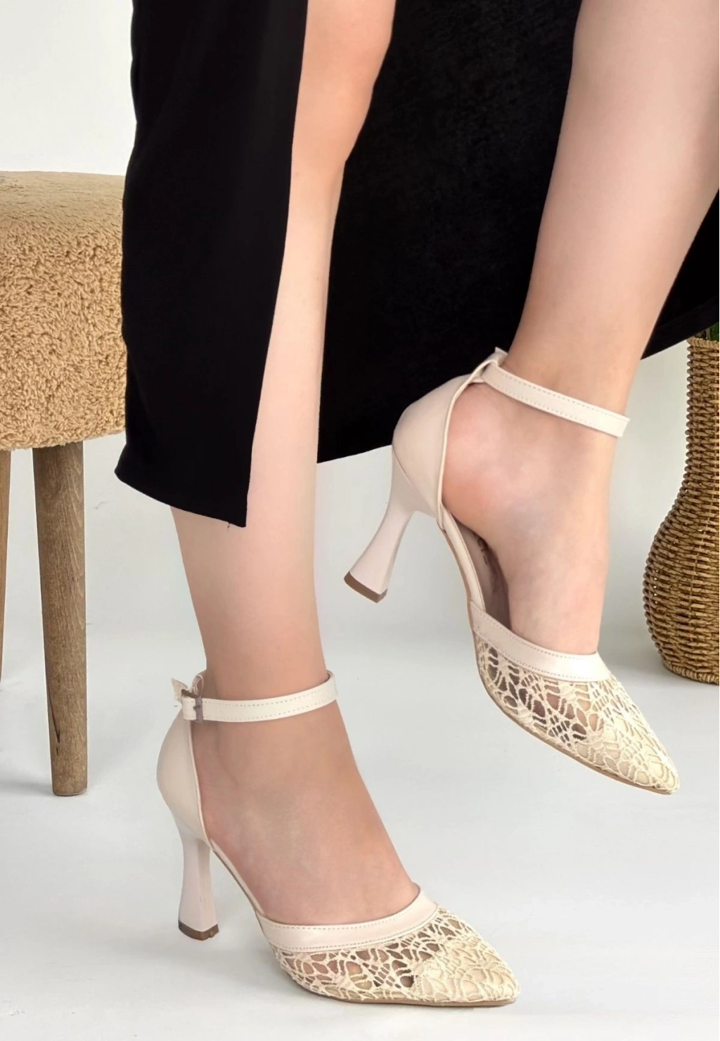 • Hejja Bej Cilt Tül Detaylı Topuklu Ayakkabı