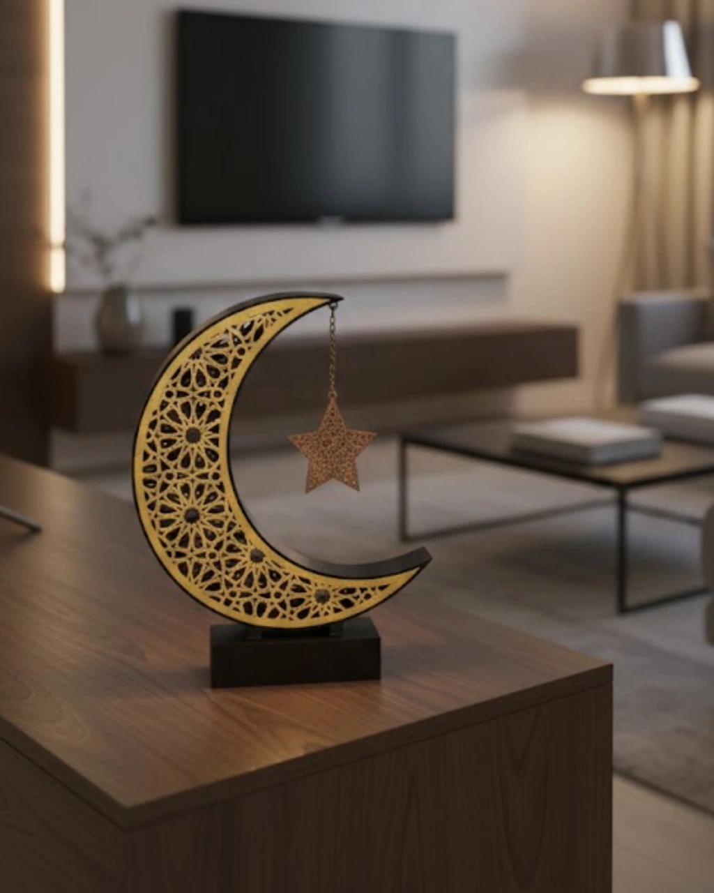 3D Hilal Yıldız Ramazan Dekoru 23x23 cm, anlamlı ve estetik bir dekoratif üründür.Masa üstü, raf ve konsol alanlarında rahatlıkla kullanılabilir.Zarif tasarımı sayesinde bulunduğu ortamda huzurlu ve şık bir ambiyans yaratır.