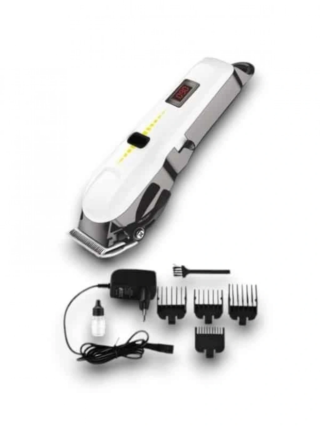 Profesyonel Şarjlı Saç ve Sakal Kesme Makinesi Profesyonel kuaförlerin tercihi olan  Profesyonel saçlı saç ve sakal kesme makinesi mükemmel tutuş ve kavrama sağlamak için özel olarak tasarlanmıştır. Ergonomik özelliklerinin yanı sıra yenilikçi ve şık görünüme sahiptir Keskin ve Dayanıklı Çelik Bıçaklar Profesyonel saç ve sakal kesme makinesi, en sert kılların bile tek seferde kesilmesini sağlayan keskin ve dayanıklı çelik bıçaklara kusursuz kesim performansı ortaya koyar. Uzun ömürlü olması için birinci sınıf kalitedeki materyalden üretilmiştir Uzun Kullanım Süresine Sahip Lityum Batarya Kablosuz kullanım rahatlığına sahip  Profesyonel saç ve sakal kesme makinesi uzun kullanım süresine sahiptir. Yaklaşık 4 saatte maksimum şarja ulaşan lityum bataryası sayesinde 150 dakikaya kadar kesintisiz saç ve sakal kesme imkanı tanır Güçlü ve Sorunsuz Motor Avantajı 220-240 V 50/60 Hz 3W voltaj seviyesine sahip güçlü motora sahiptir. Motor gücü 3.6 Volttur. Bu sayede hem saç hem de sakal kesiminde sorun yaşamadan profesyonel tıraş avantajı sunar Islak ve Kuru Tıraşa Uygun Tasarım Profesyonel kuaförlerin tercihi  Profesyonel saç ve sakal kesme makinesi hem ıslak hem de kuru saç ve sakal kesiminde kullanılabilir Profesyonel Kesim İçin Kılavuz Tarak Aksesuarları Her saç ve sakal kesim tarzına mükemmel uyum için 4 adet kılavuz tarağı ile birlikte gelir.