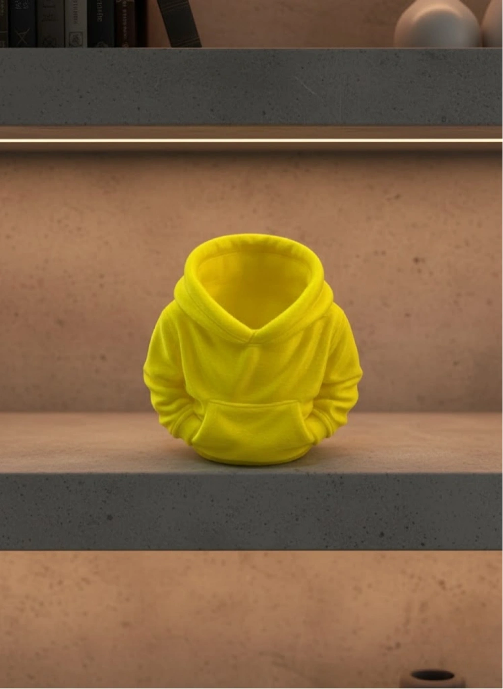 Sarı hoodie kalemlik, masa üstü düzenini sağlarken dekoratif bir görünüm sunan şık ve eğlenceli bir aksesuardır. 10x10 cm ölçüsü sayesinde çalışma masası, raf veya kitaplık üzerinde rahatlıkla kullanılabilir. Hoodie formundaki tasarımı, ürünü sıradan kalemliklerden ayırarak özgün bir tarz ortaya koyar.Canlı sarı tonu, bulunduğu alana sıcak ve enerjik bir hava katar. Evde çalışma alanlarında, ofis masalarında veya öğrenci odalarında rahatlıkla tercih edilebilir. Kalem, silgi ve küçük ofis gereçlerini düzenli şekilde saklamaya yardımcı olurken masa üstünde estetik bir detay oluşturur.Dekoratif yapısı sayesinde yalnızca işlevsel bir kalemlik değil, aynı zamanda masa düzenini tamamlayan bir obje olarak da kullanılabilir. Küçük boyutları sayesinde dar alanlarda bile yer bulur ve düzenli bir görünüm sağlar.Dayanıklı yapısı ile günlük kullanıma uygundur. Masa üstüne renk ve hareket katmak isteyenler ya da farklı tasarımlara sahip masa aksesuarları arayanlar için ideal bir üründür. Hem kendiniz için hem de sevdiklerinize eğlenceli bir hediye olarak tercih edilebilir.
