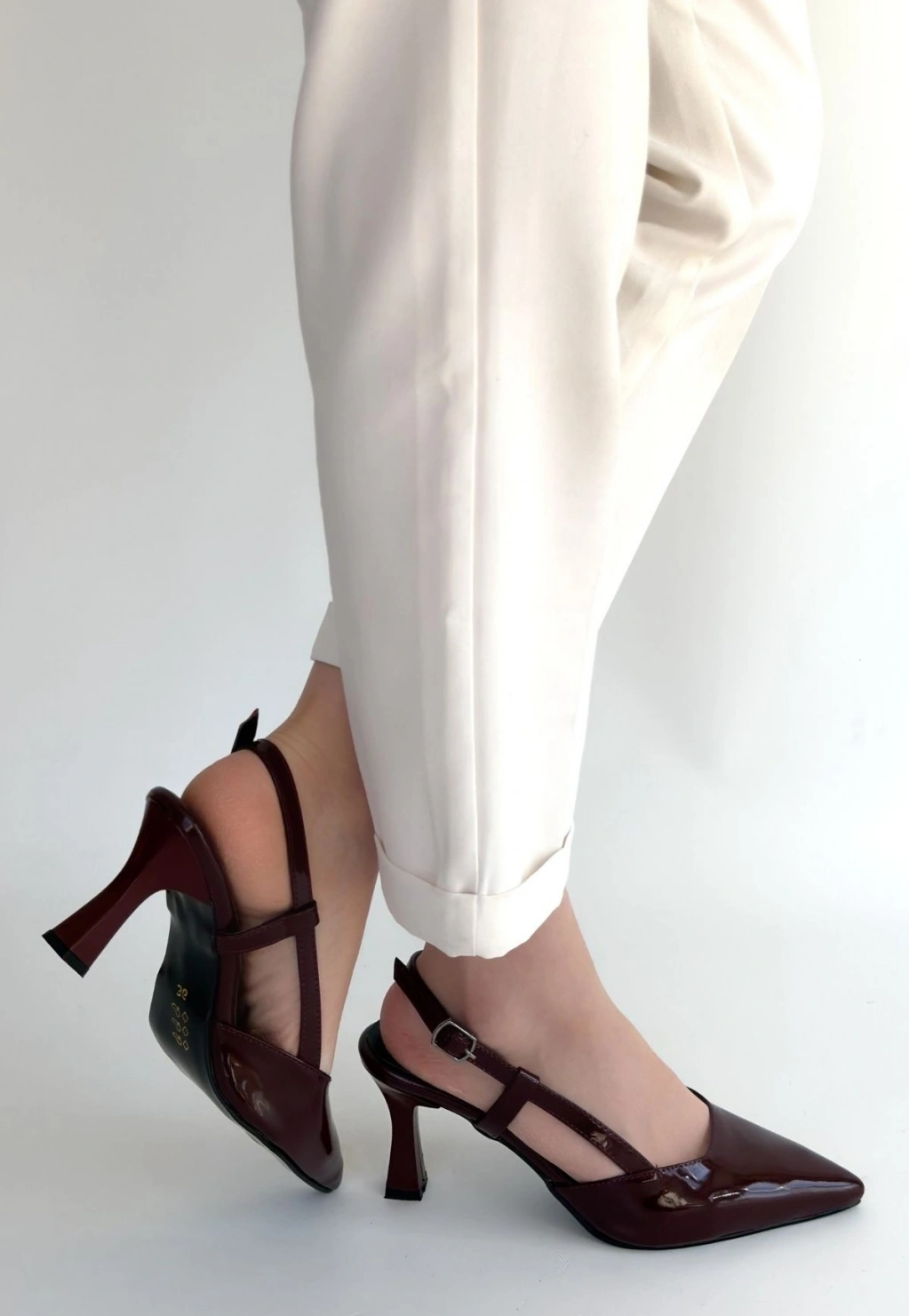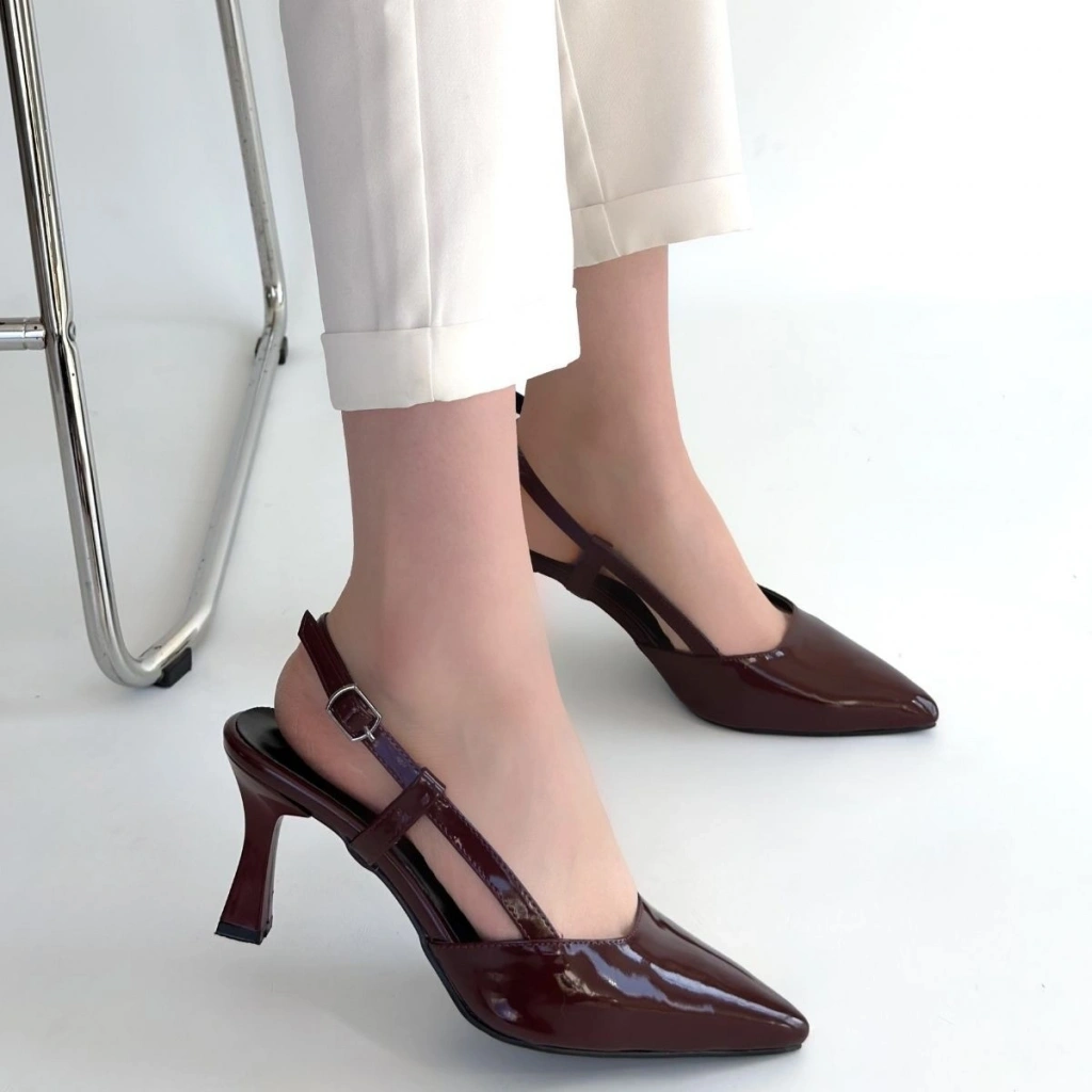 • Hoost Bordo Rugan Topuklu Ayakkabı