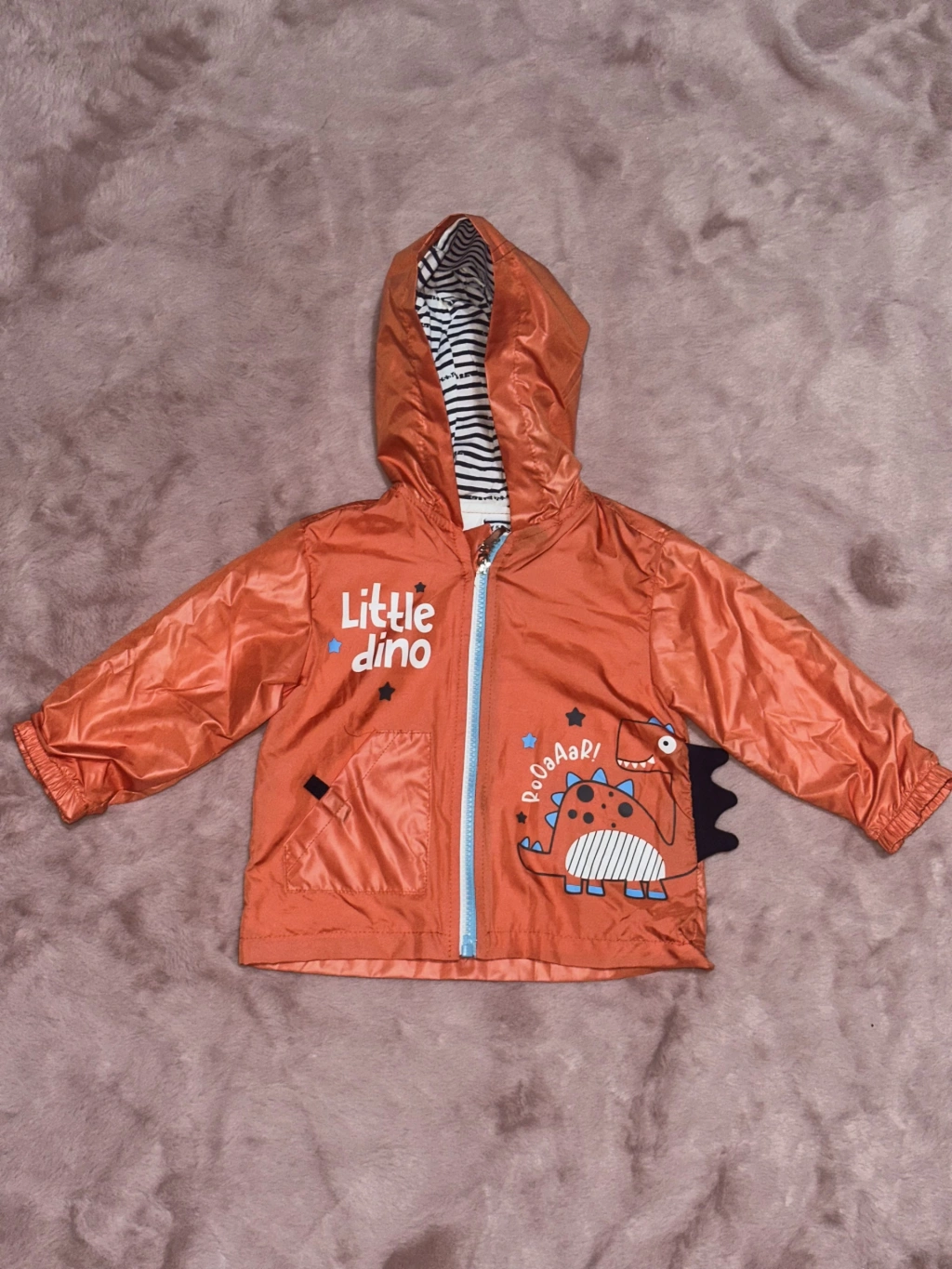 1-5 yaş erkek çocuk kapşonlu baskılı astarlı mont turuncu