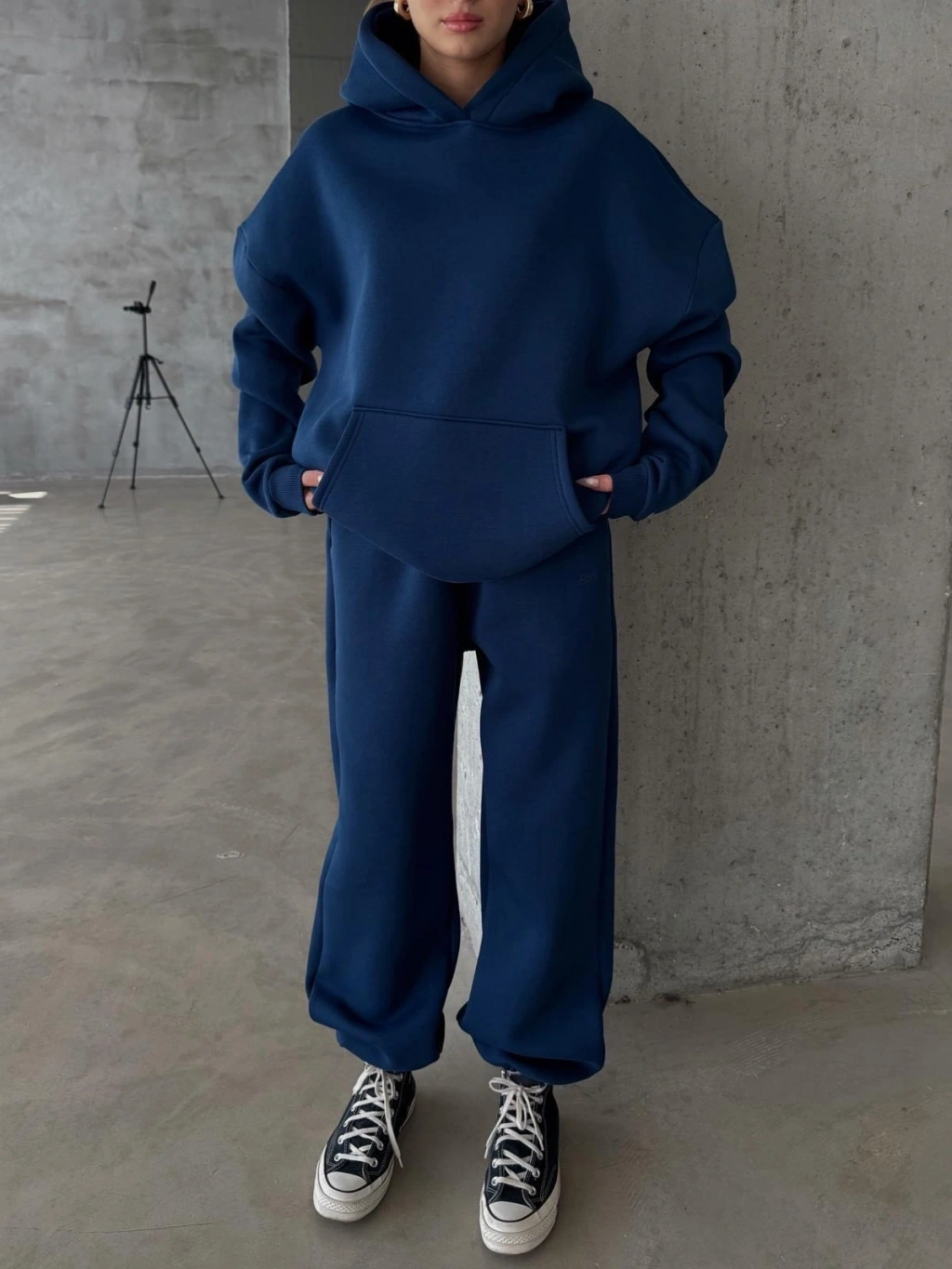 3 iplik şardonlu kapşonlu sweatshirt lacivert p510436