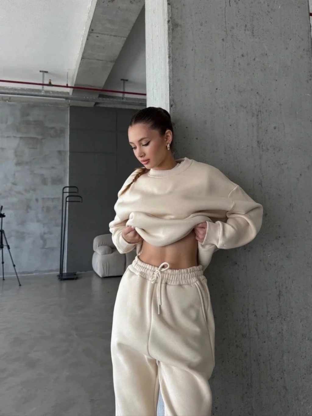 3 iplik şardonlu Lastik paça eşofman bej p510439