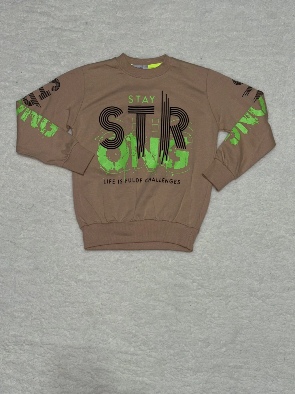6 yaş str yazı basklı erkek çocuk bisiklet yaka sweat vizon